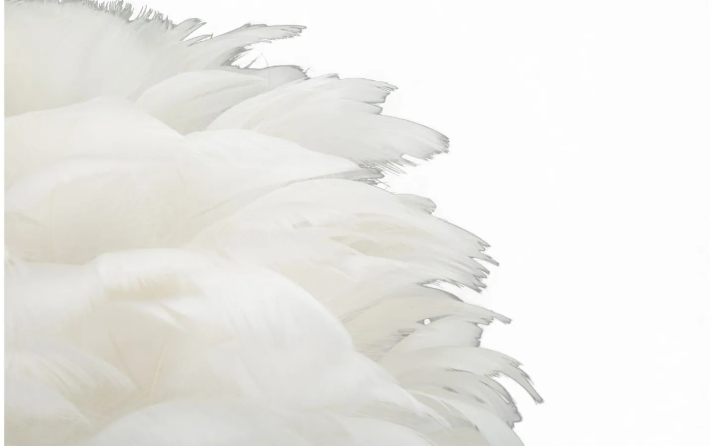 Bordslampa i förgylld metall med lampskärm sammansatt av vita fjädrar.