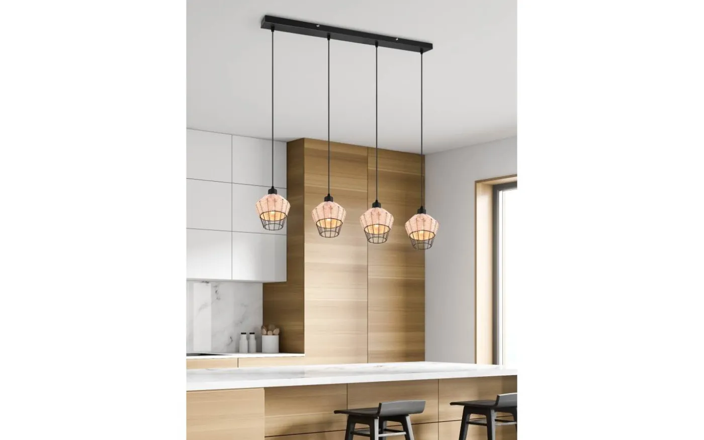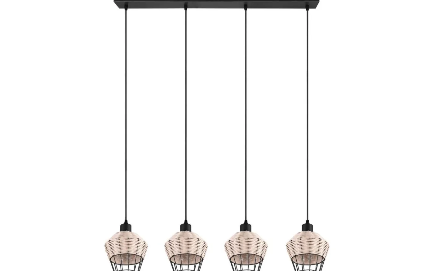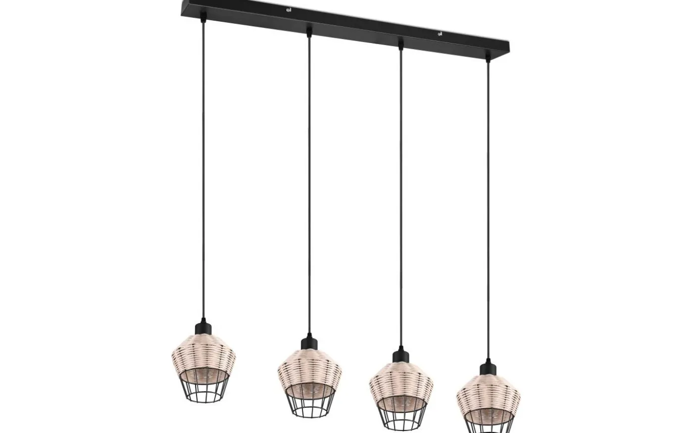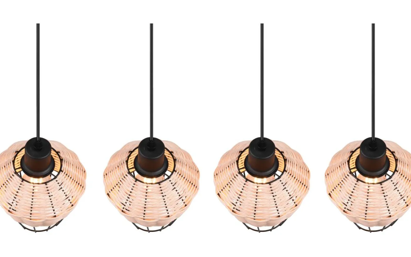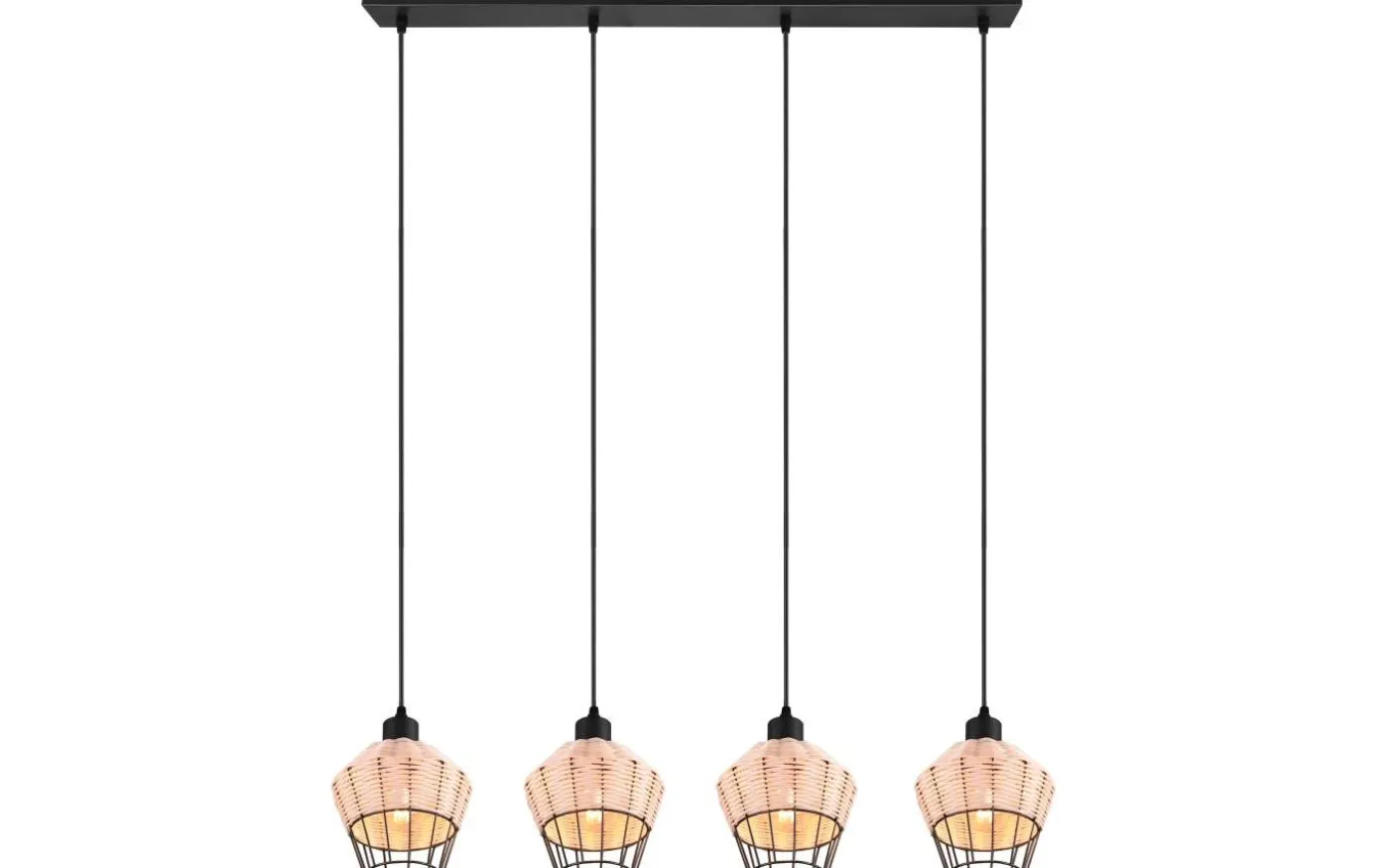 BORKA-serien får bohemianhängare att slå snabbare. I trendig rottingvävd design skapar denna pendellampa med fyra ljuskällor varma accenter och ger hemkänsla med hjälp av kombinationen av naturmaterial och metall. Skärmarnas moderna design säkerställer ett mjukt ljusflöde ovanför matbordet och skapar en stämningsfull miljö där du trivs. Den moderna blandningen av naturlig rottingvävd design och svart matt metall gör lampan till ett blickfång i ditt vardagsrum. För modern och pålitlig belysning rekommenderas en LED-lampa. Den erbjuder hög ljuskvalitet, är mångsidig och övertygar med en jämn belysning. Dess långa livslängd och låga värmeutveckling gör den till det perfekta valet för en mängd olika användningsområden. Ljuskälla: exklusiv 4x E27 · max. 40W. Extra information: Justerbar i höjd, IP20, Lampa(or) ingår ej