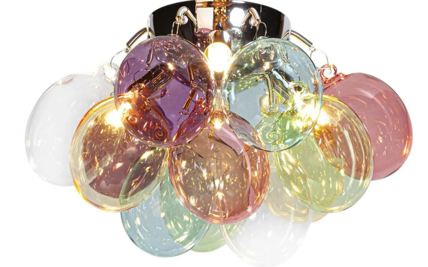 Gross från välkända By Rydéns är en snygg plafond som passar i de flesta utrymmen. Plafondens upphäng i blank krom kombinerat med 12st munblåsta glaskulor i vackra färger ger lampan ett exklusivt och trendigt intryck. De skira glaskulorna släpper genom ett fantastiskt ljusflöde och lampans storlek gör den lättplacerad. Till plafonden behöver du 3st G9 ljuskällor, dessa säljes separat – se passande förslag under tillbehör.