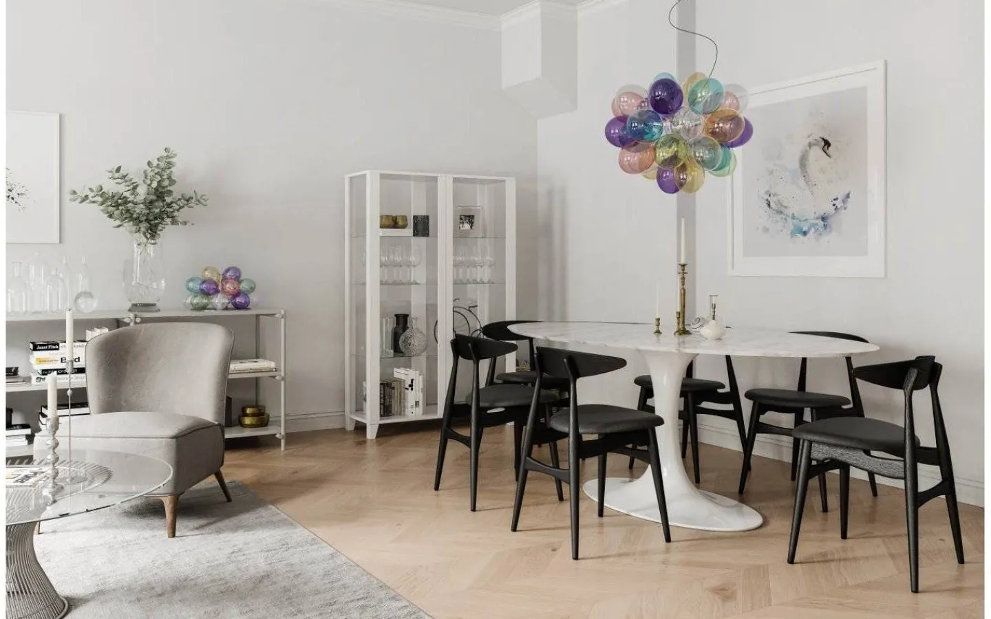 Gross från välkända By Rydéns är en snygg taklampa med upphäng i blank krom kombinerat med 32st munblåsta glaskulor i vackra färger som ger lampan ett exklusivt och trendigt intryck. De skira glaskulorna släpper genom ett fantastiskt ljusflöde.