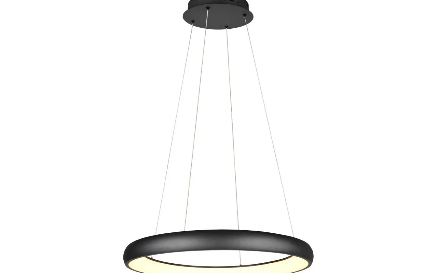 Klarhet och funktionalitet kombinerat – pendellampan CARDONA imponerar med sin slående design, som kännetecknas av en svävande ring. Denna eleganta ring verkar bokstavligen sväva i rummet och drar allas uppmärksamhet till sig. Armaturen är idealisk för moderna vardagsrum, kontor eller matsalar och ger tack vare den subtila ljuskällan inuti ringen en jämn, bländfri belysning, vilket skapar en behaglig atmosfär. Ljusstyrkan kan regleras i tre nivåer med en vanlig ljusströmbrytare och ljusfärgen kan justeras direkt med en strömbrytare på armaturen. Den svarta matta ytan ger varje rum en tidlös elegans och en modern touch. Dessutom har armaturerna modern LED-teknik, vilket står för hög ljuskvalitet. LED-ljuskällor kännetecknas av lång livslängd och låg värmeutveckling. Ljuskälla: inklusive 1x SMD, 59W · 1x 6900lm, 2300+3000+4000K. Extra information: Justerbar i höjd, Takmontering, Färger direkt justerbara på lampan, IP20, Ej lämplig för extern dimmer, Dimbar via strömbrytare