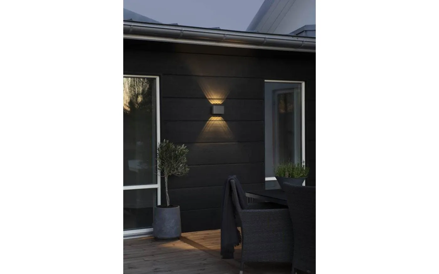 Denna stilrena vägglampa är tillverkad av aluminium i en vacker antracitgrå färg. Chieri har inbyggd LED som avger ett behagligt och bländfritt ljus med en vacker och unik ljusbild som reflekteras både uppåt och nedåt. Installeras smidigt med 230V.
