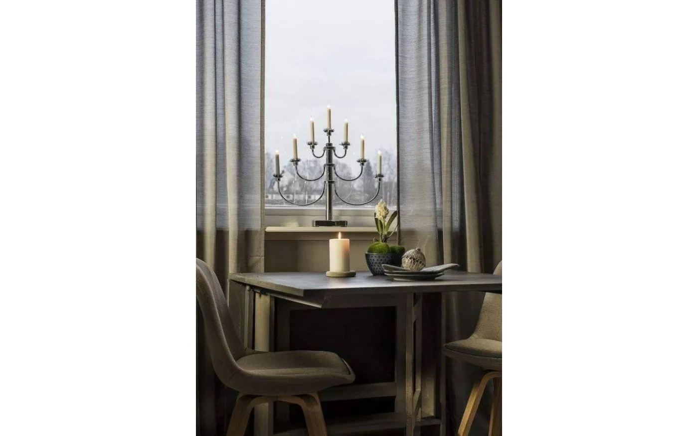 Vackra Classic elljusstake, från välkända Konstsmide, är en tidlös och elegant 7-armad ljusstake. Classic adventsljusstake är gjord i kromfärgad metall och har sju vackert, böljande armar med uppåtljus. Ljusmanschett med små silverkottar medföljer.