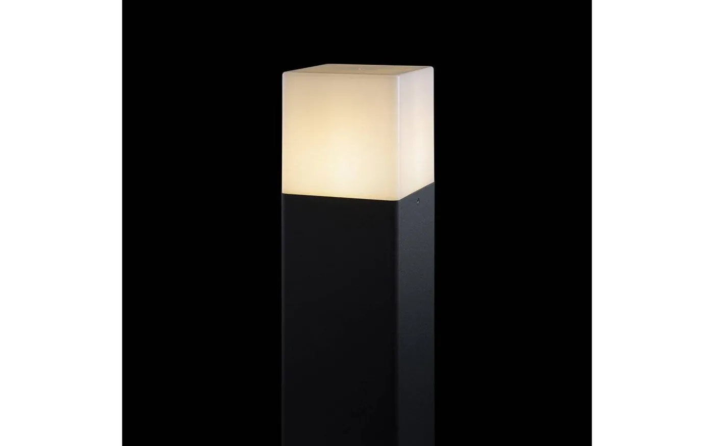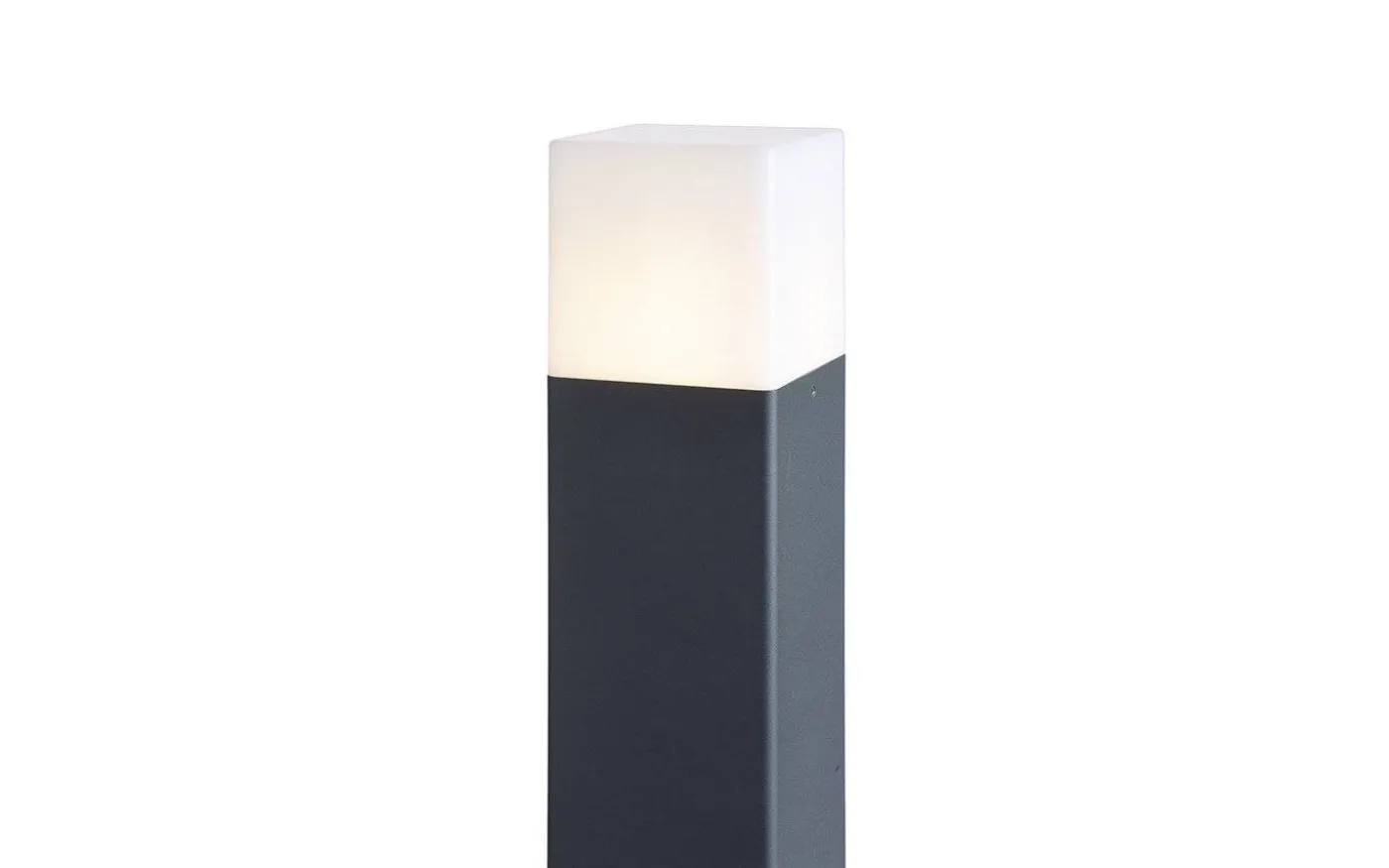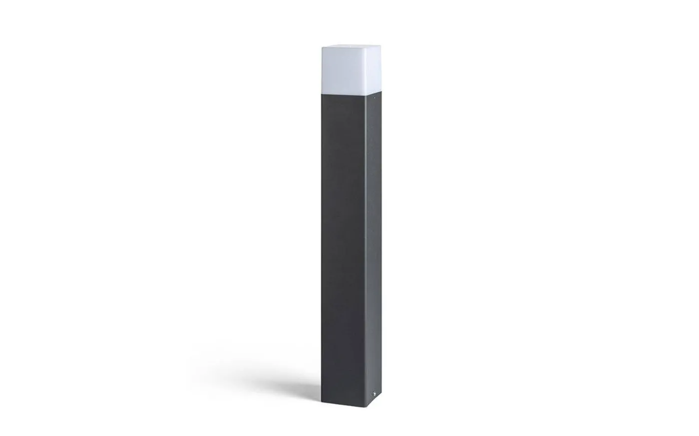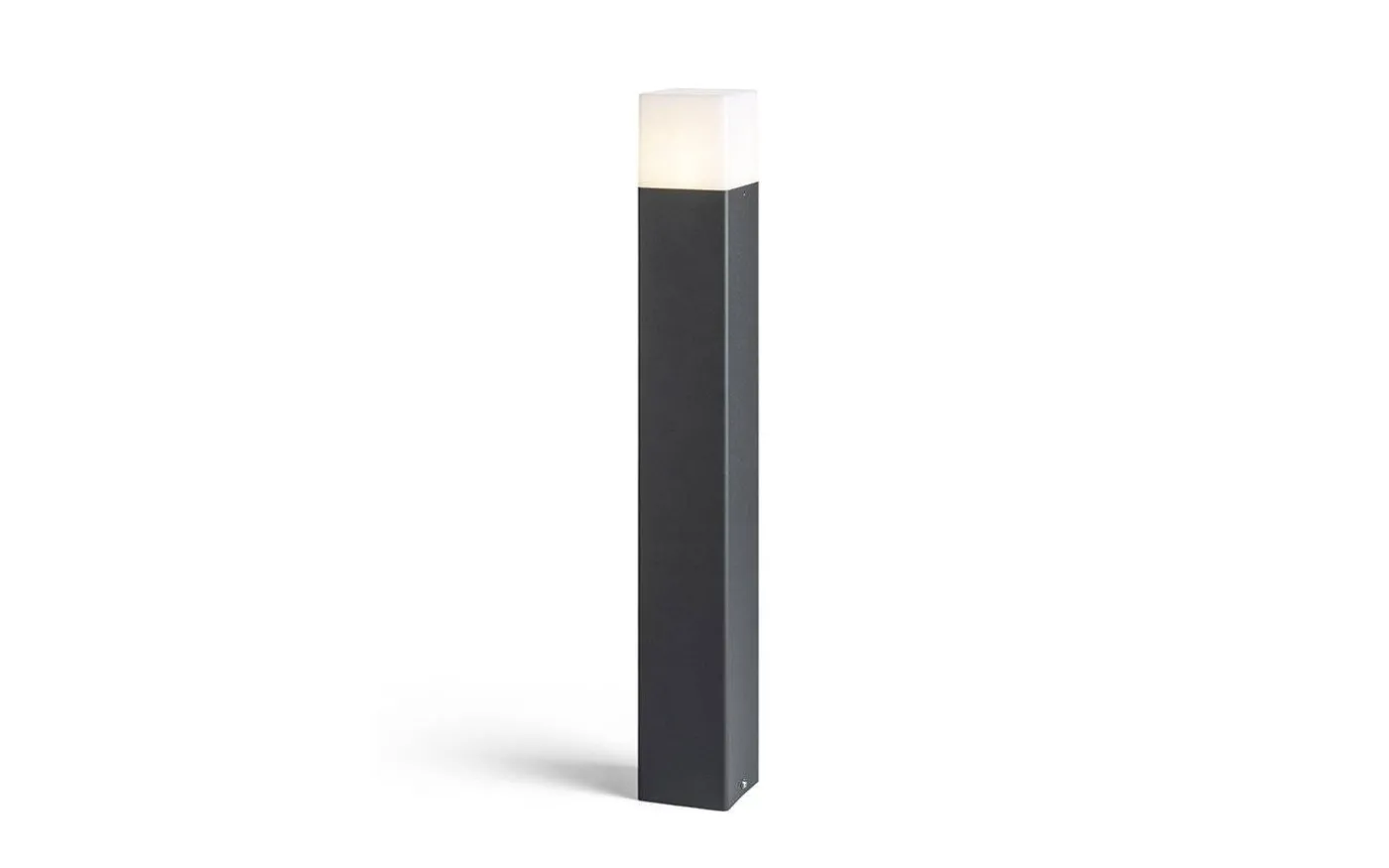 Stilrena Clyde trädgårdspollare från Rendl är en elegant pollare gjord i aluminium med antracit finish och med opalfärgad skärm som släpper genom ett fint ljusflöde.