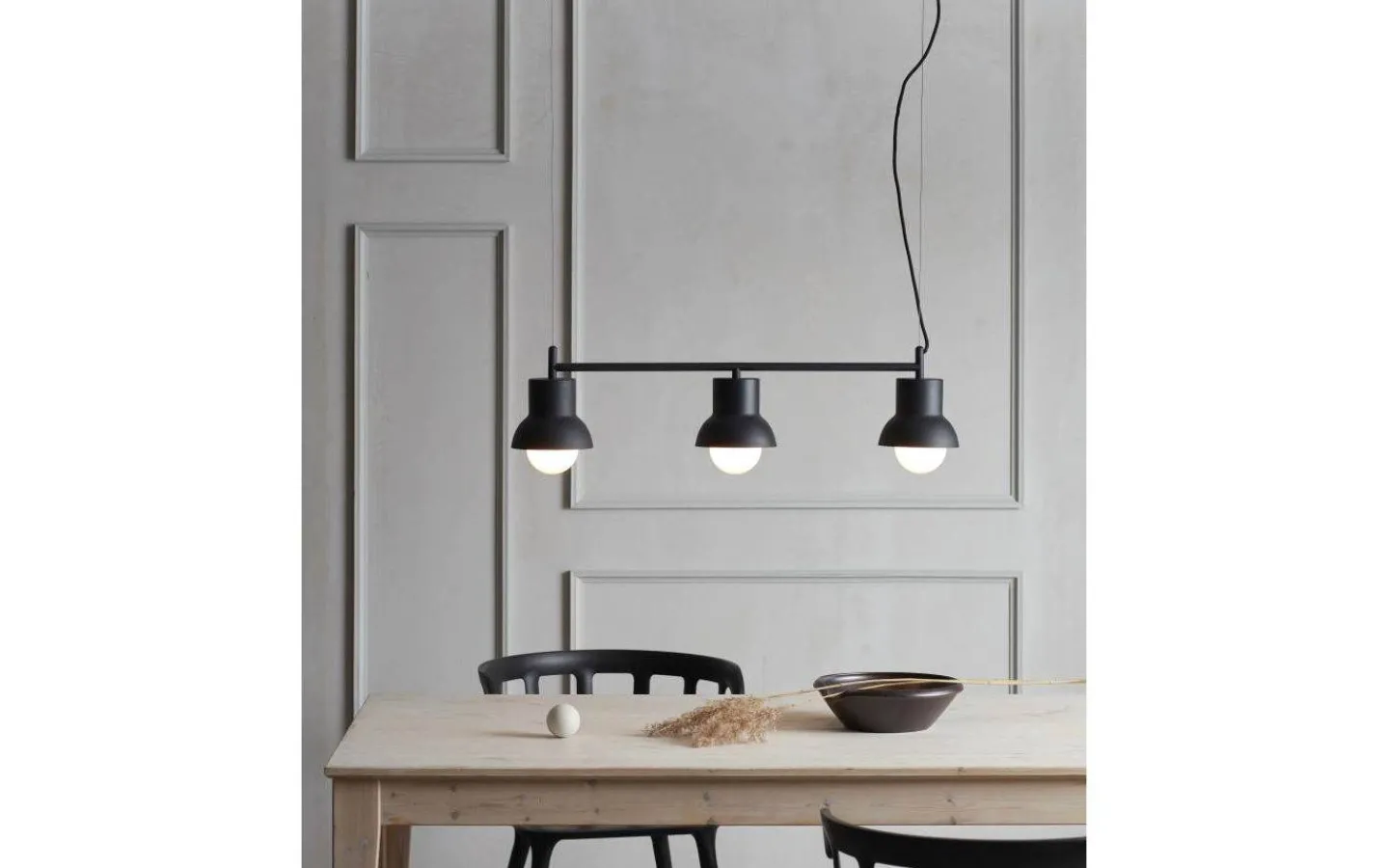Trendsäkra taklampan Down från välkända Co Bankeryd, är en avlång taklampa med tre lamphållare med plats för valfria ljuskällor med E27-sockel. Down är gjord i metall och har en snygg, mattsvart finish.