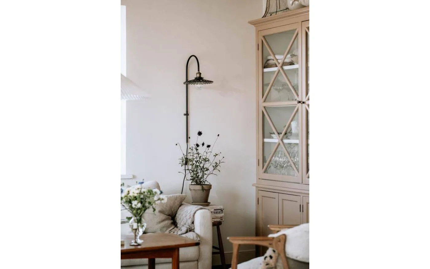 Cobbler vägglampa från Globen Lighting är designad av GL Design Studio. Vägglampan är en ny tappning på den klassiska skomakarlampan och gör sig perfekt i det modernt lantliga- eller sekelskifteshemmet, men också i den franska bistroinredningen. Vägglampa har en skärm av veckat rökfärgat glas som kombineras med detaljer i mattsvart- och antik mässingsfärgad metall.
