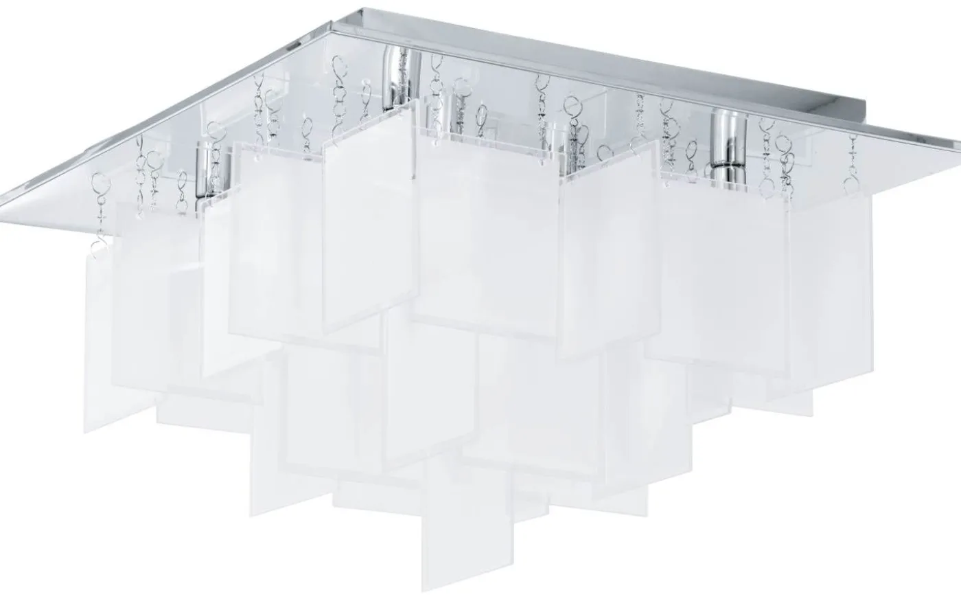 Denna takarmatur från serien CONDRADA 1 är tillverkad av förkromat stål och vitt satinerat glas och utrustad med åtta G9-halogenlampor.