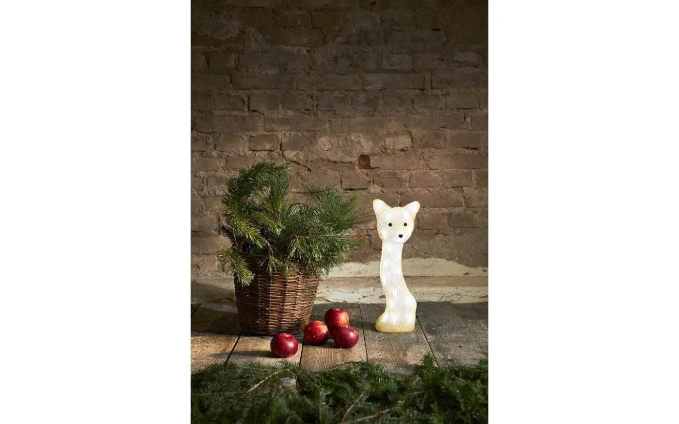 Denna dekorationsfigur kan bli en kul detalj att ha i trädgården eller som prydnad inomhus. Räven har 30st inbyggda neutralvita ljuskällor i LED och levereras komplett till dig med en 5 meter lång anslutningskabel med transformator och stickkontakt för vägguttag.