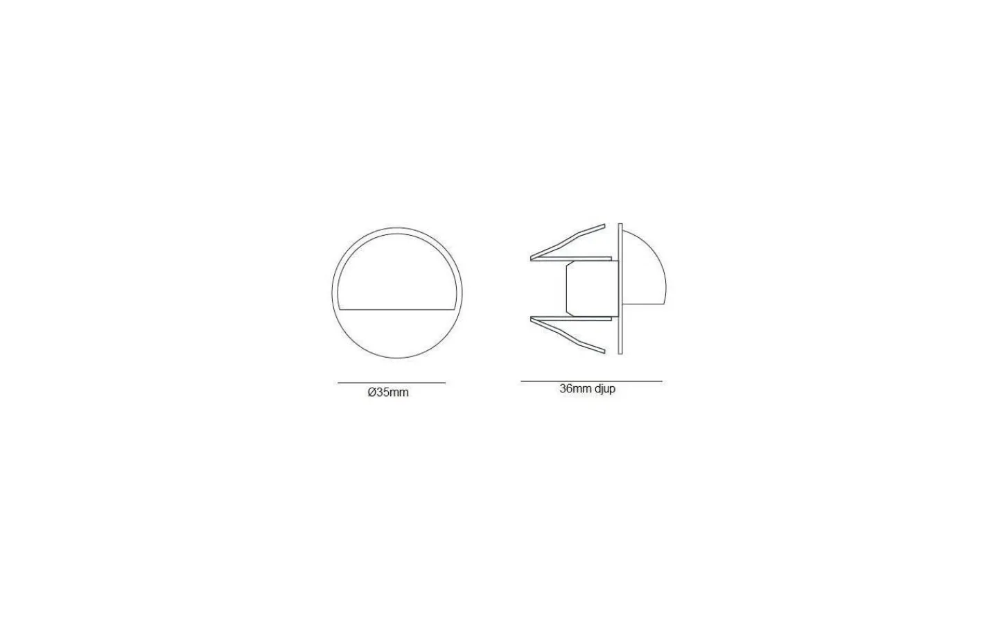 - Ø 35 mm diameter (håltagning Ø 22-24 mm)