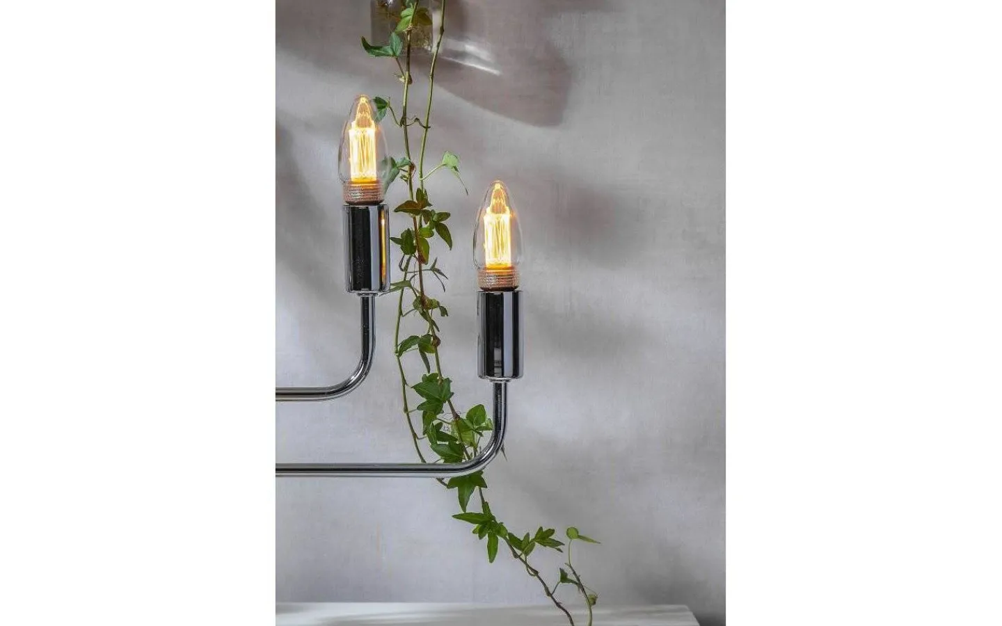 LED-lampa i klart glas med varmt och mjukt sken med en färgtemperatur på 1800K. Den har en E14 sockel och är dimmerkompatibel. Passar perfekt som dekorationsbelysning.