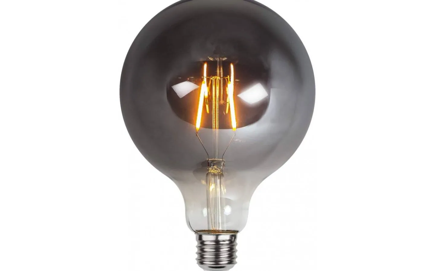 Häftig LED-lampa med E27 sockel och ett rökfärgat glas. Perfekt dekorationsbelysning och som synlig ljuskälla i fönster eller bordslampa.