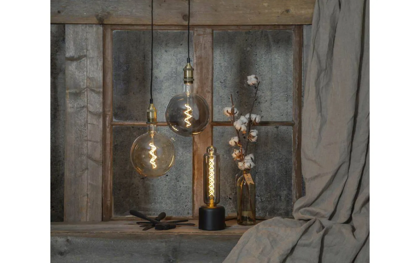 Globformad LED-lampa med E27 sockel i rökfärgat glas. Avger ett mjukt varmt ljussken med sina 2200K och har en ljusstyrka på 55 lumen som motsvarar ca 5W i glödljus.