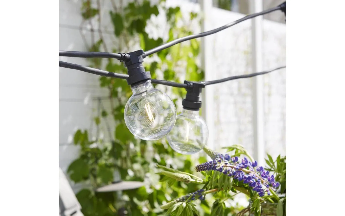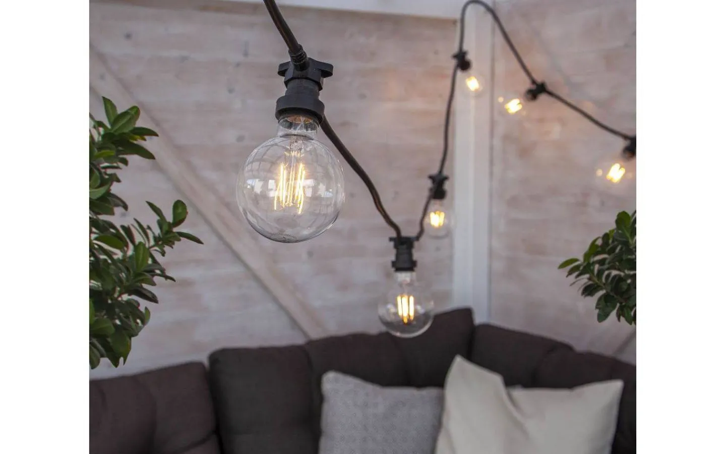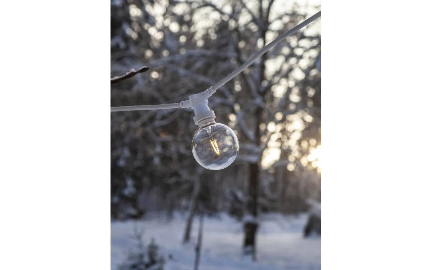En ljuskälla i okrossbar polycarbonat för både inomhus- och utomhusbruk. Använd denna ljuskälla i din slinga för att lysa upp din balkong, uteplats, julgran eller i partytältet.