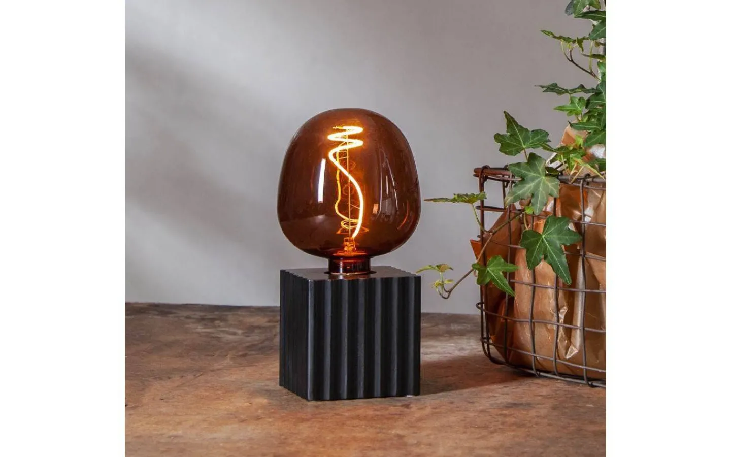En vacker ljuskälla med låg ljusstyrka och mörkbrunt glas. Dekorativ lampa som hängs över matsalsbord eller soffbord. Stående blir denna lampa en mysig dekorationsbelysning som passar perfekt i våra lampfötter. Hittar sin självklara plats över såväl bardiskar som över matsalsmöbel. Kan hänga själv eller i ett arrangemang med 355-14 G190 Cognac Apple.