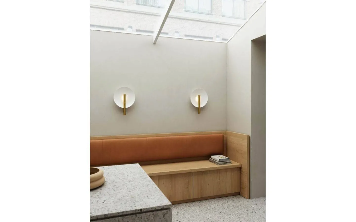 Furiko från Design For The People är en stilren och moden vägglampa. Bakom stången i mässing placerar du ljuskällan och ljuset får reflekteras på den vita metallskärmen och skapar ett mjukt och indirekt ljus.