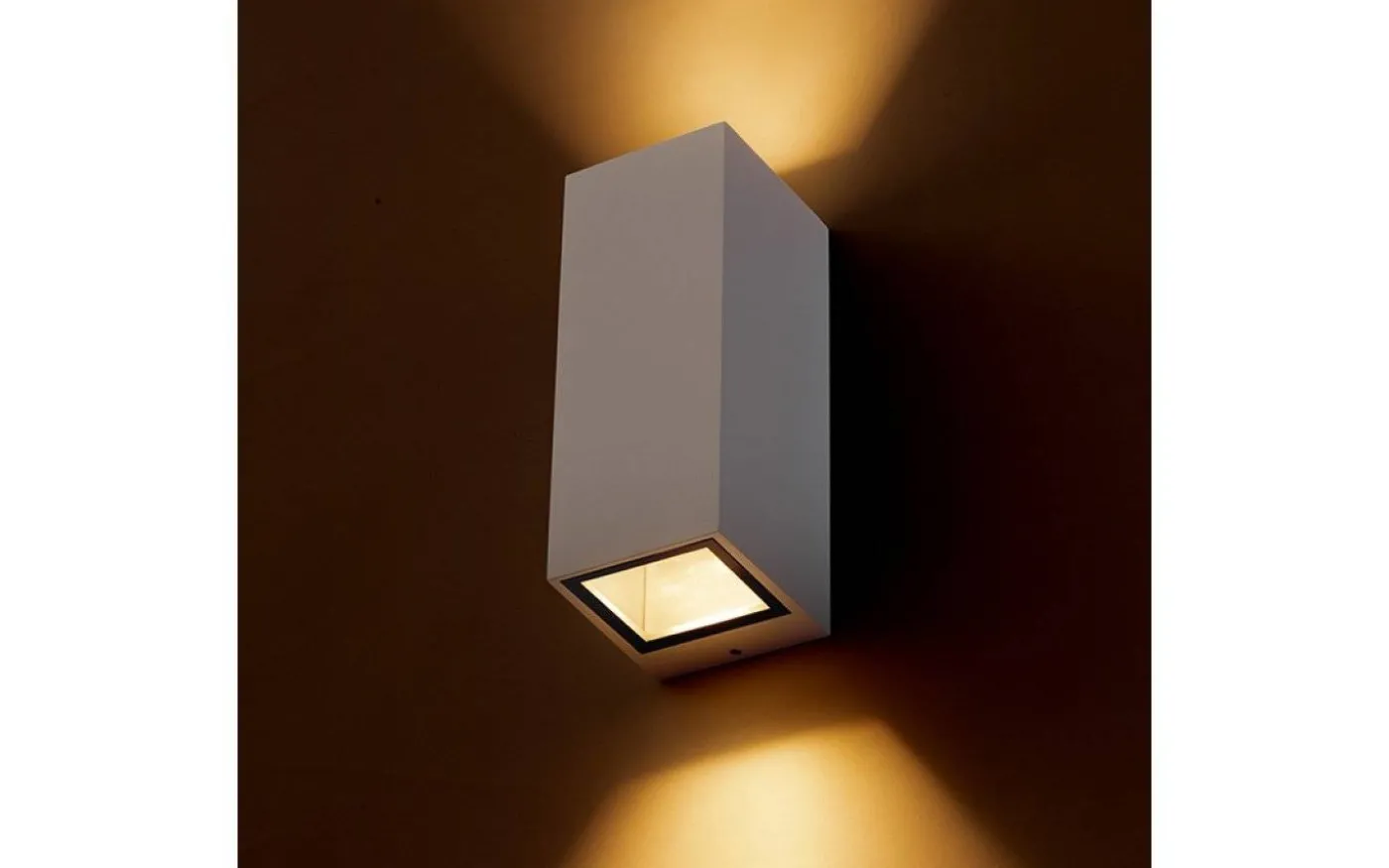 Denna högkvalitativa vägglampa är tillverkad av aluminium snyggt lackerad i vitt med frostat glas. Avger ett behagligt, bländfritt ljus som reflekteras både uppåt och nedåt.