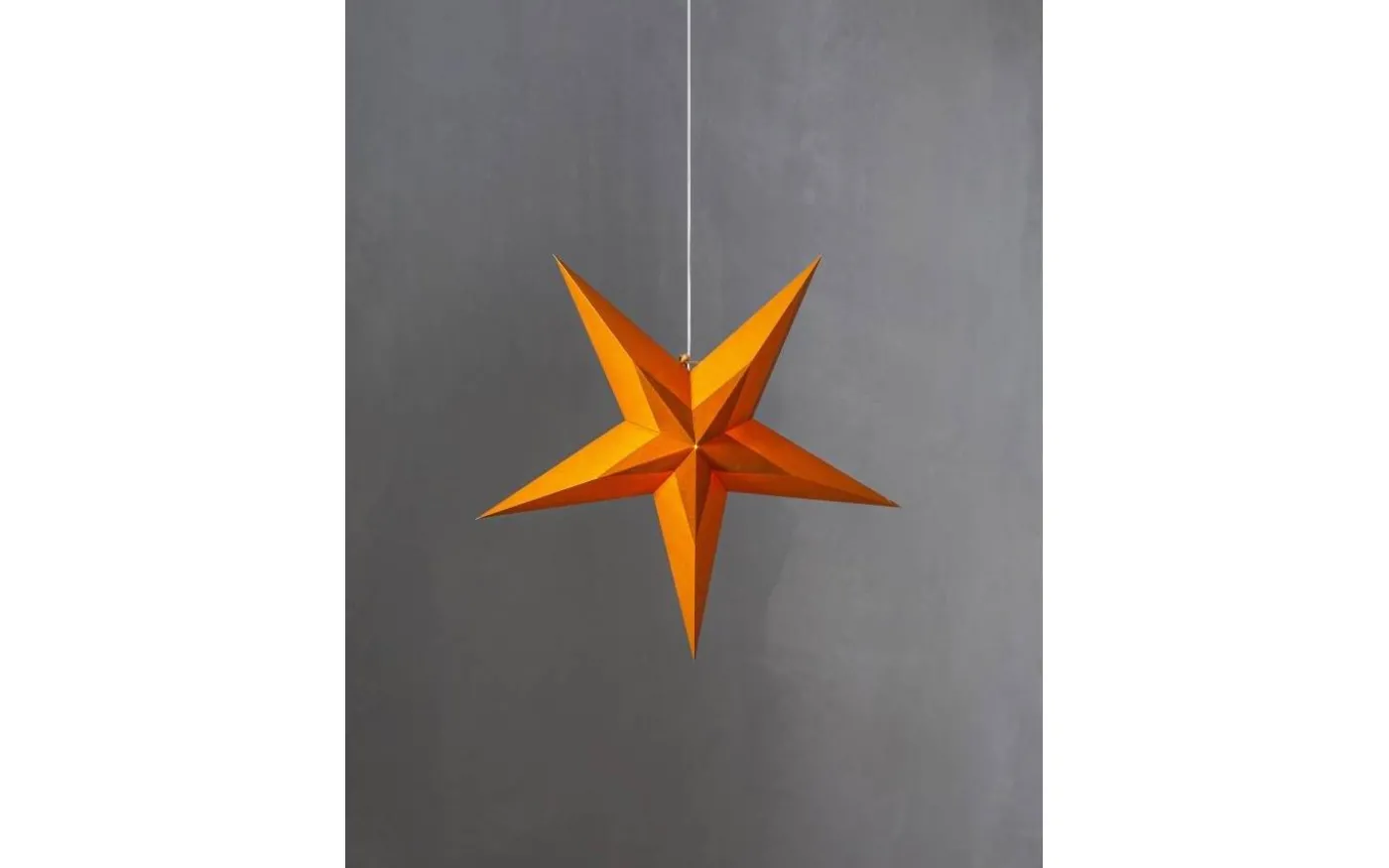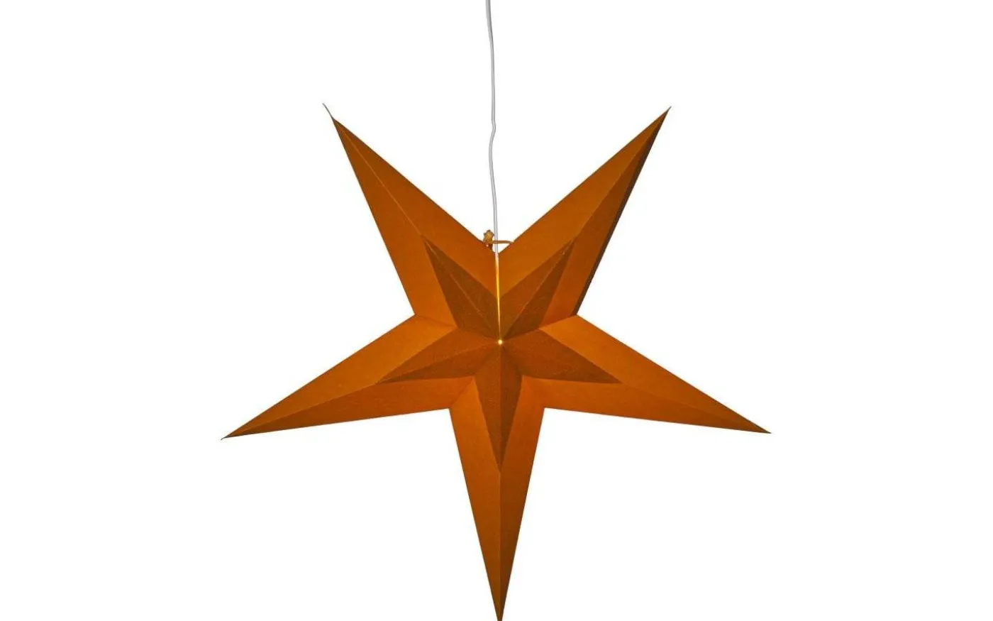 Stilren pappersstjärna i rost, miten av stjärnan är dekorerad med en stjärna i rost sammet. Modern och elegant känsla, dekorera hängande eller stående, med eller utan ljus.