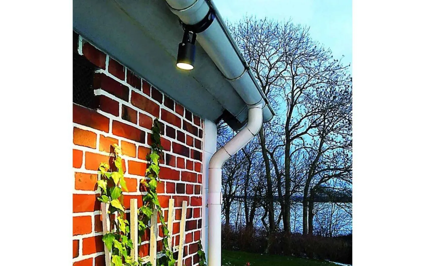 Monteras med fjäderbelastad hållare för hängrännor 100, 125 eller 150 mm. Lätt att flytta i sidled, lätt att vinklas för bästa ljus.