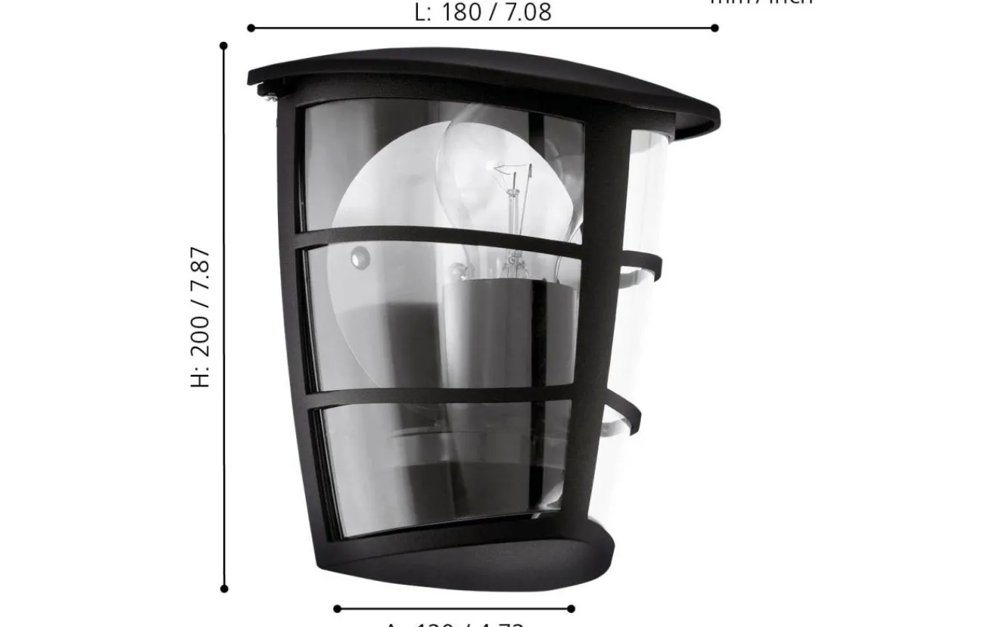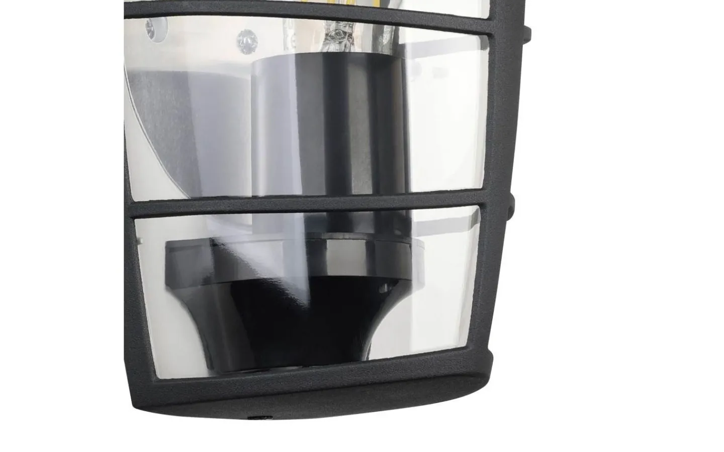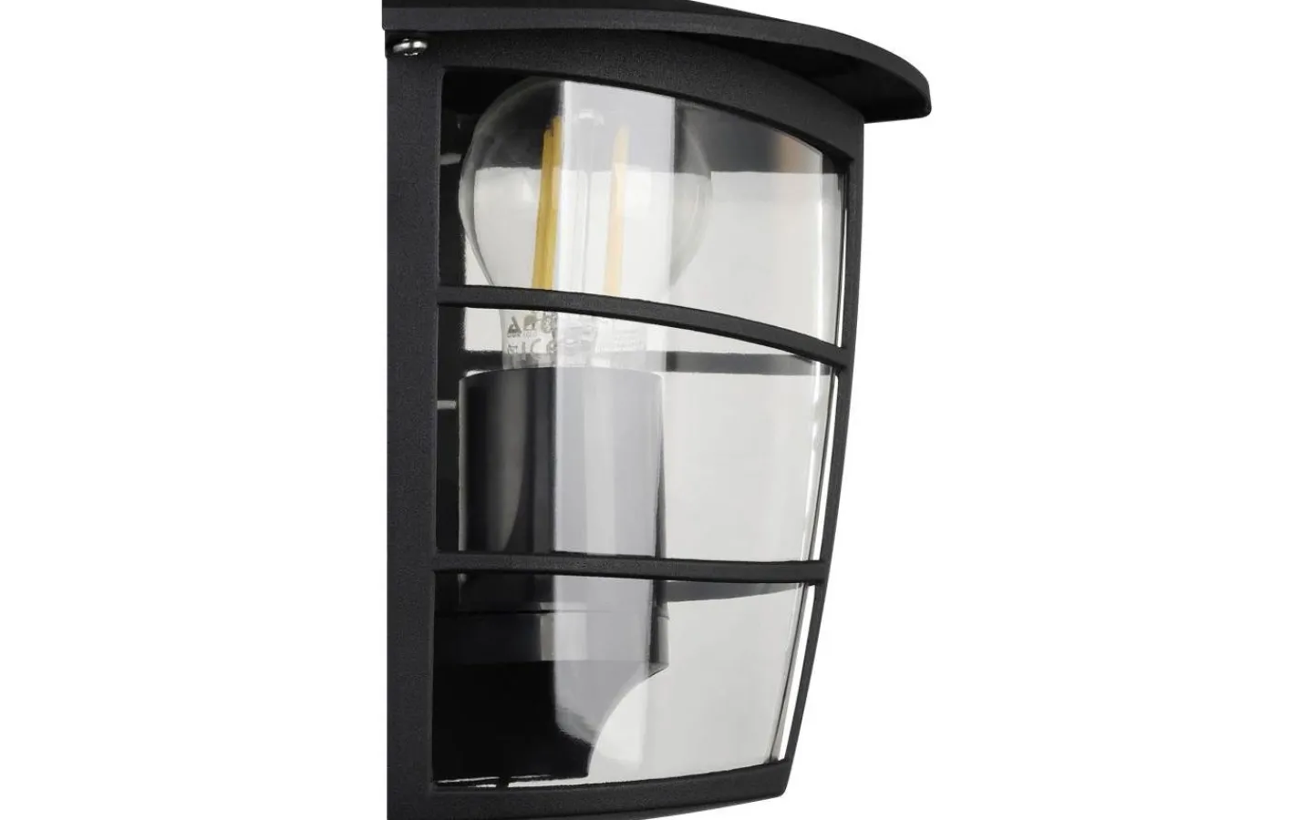 ALORIA ytterväggslampa har en modern lanterndesign med en kropp i svart gjuten aluminium och klara plastrutor. Designen ger en direkt vy av glödlampan. Produkten är lämplig för utomhusbruk på grund av sitt IP44-skydd mot sprutvatten och dess klassiska stil kommer vackert att komplettera ditt utomhusutrymme.