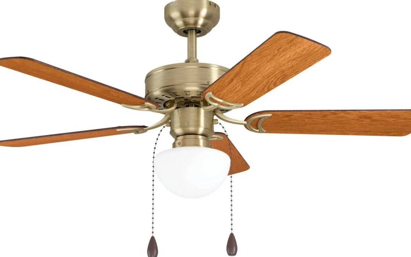 Candiz är en takfläkt med lampkupa från välkända Eglo. Denna takfläkt har stomme i mässingsfärgad stål med en antik finish och blad av mdf med en brun, träfärgad finish.