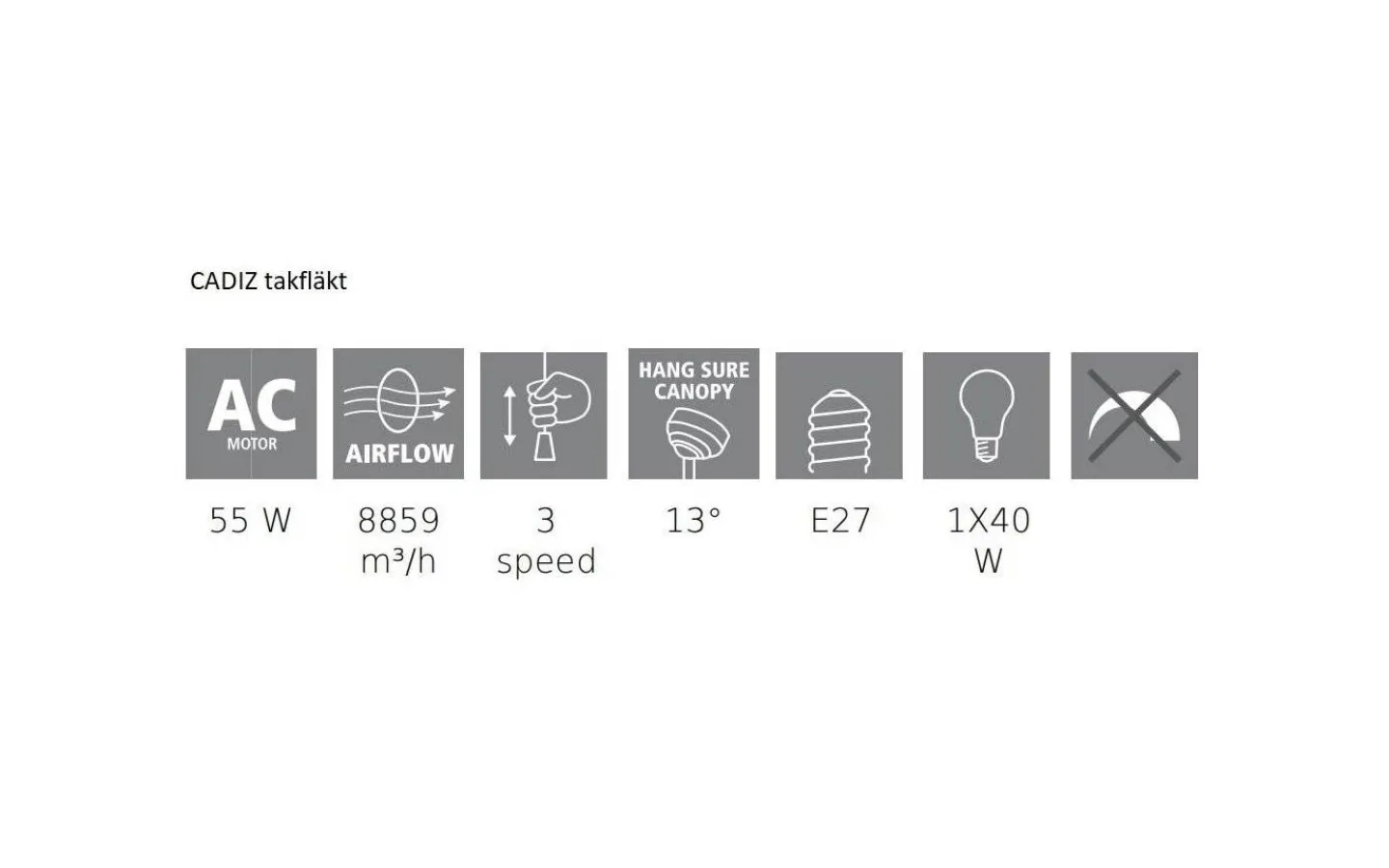 Ljuskällan placeras bakom den opalvita glaskupan och till denna takfläkt behöver du en LED-lampa med E27-sockel. Komplettera med någon av våra många ljuskällor i LED som inte utsöndrar värme, har låg energiförbrukning och väldigt lång livslängd. Se passande förslag under ”Tillbehör”.