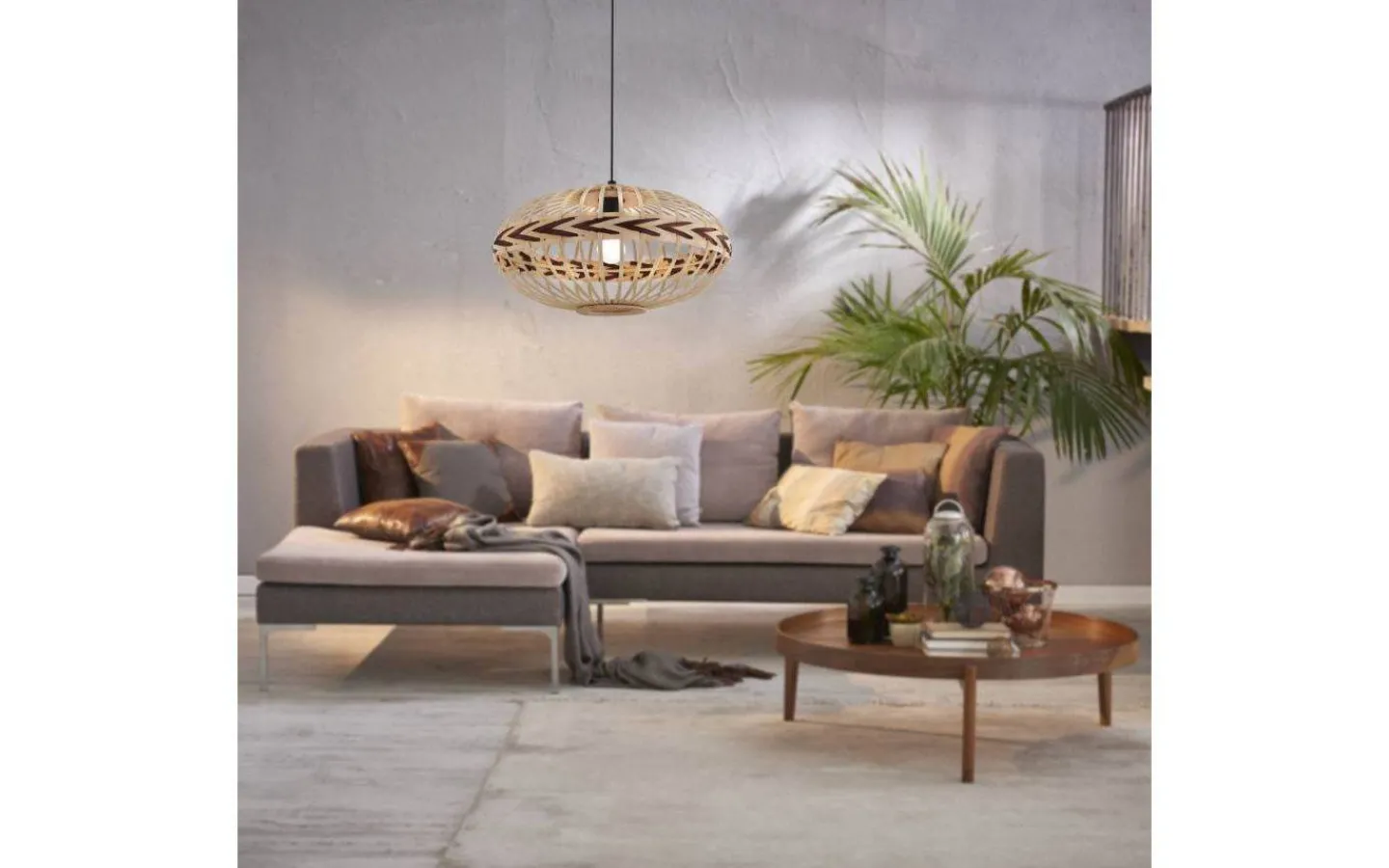 Dondarrion taklampa från Eglo är en härlig och vacker taklampa av naturfärgat trä med mörka inslag.