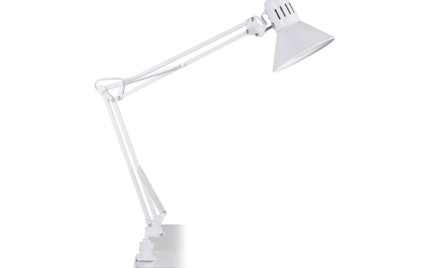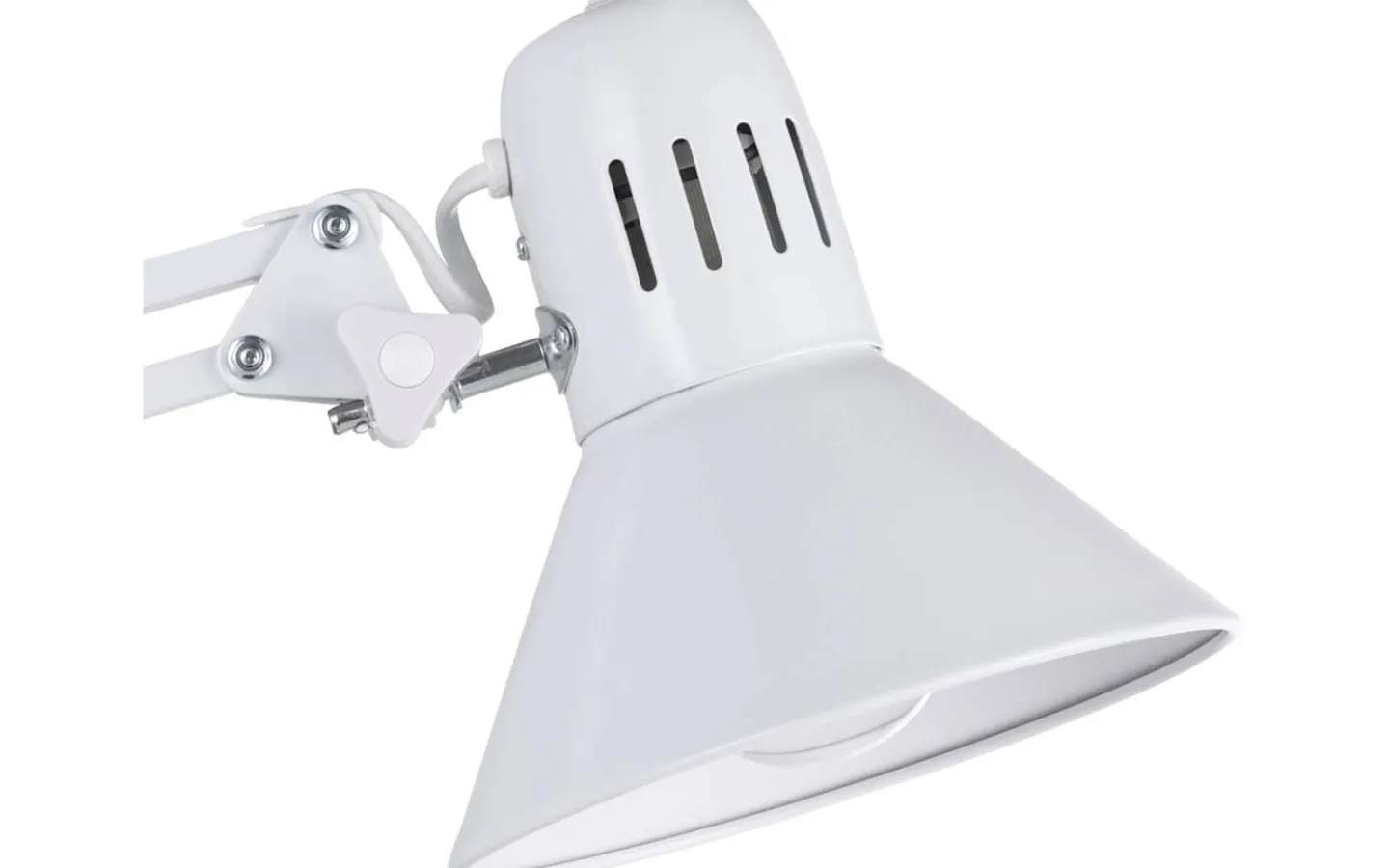 FIRMO-clip-on-lampan är gjord av blank vit metall och har en justerbar arm och huvud. Huvudet har en vit inre finish. Klämman är justerbar för att säkerställa att ljuset är kompatibelt med olika bordsskivor och hyllor. Den kan enkelt slås på och av med hjälp av vippknappen på huvudet. Denna clip-on lampa är perfekt att använda som läslampa, och med sin klassiska design smälter den sömlöst in i moderna, industriella interiörer.