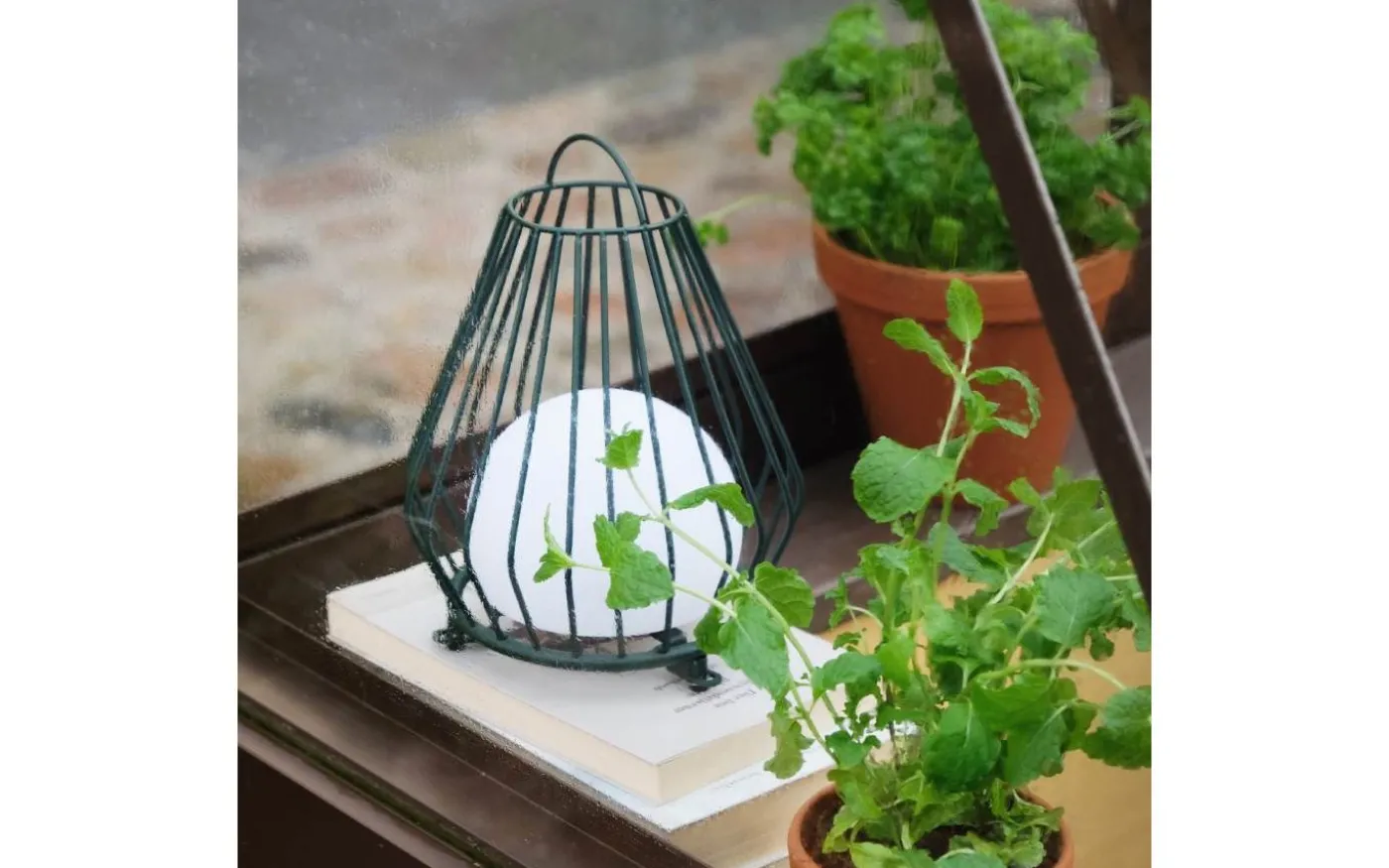 Evesham Laddbar/Solcells Lykta 23cm LED 2700K Grön IP44