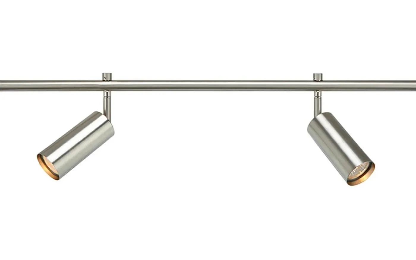 Expand skena på 70 cm med 2 fasta, cylinderformade spotlights. Allt i stålfärgad metall för ett stilrent och modernt intryck. Att spotlightsen är fasta på skenan innebär att de inte går att flytta i sidled, däremot är de vinklingsbara så att du enkelt kan rikta ljuset dit du önskar.