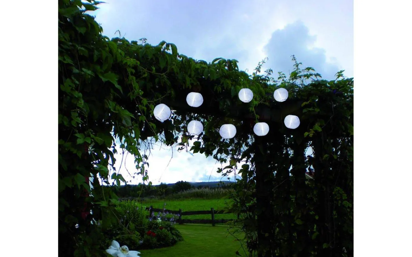 Festival är en solcellsdriven ljusslinga med vita risbollar i polyester, som blir en härlig dekoration på uteplatsen eller i trädgården. Ljusslingan är 2,7 meter lång med 10 stycken bollar. Inuti varje boll finns en ljuskälla i LED som avger ett vitt ljussken vid mörker.