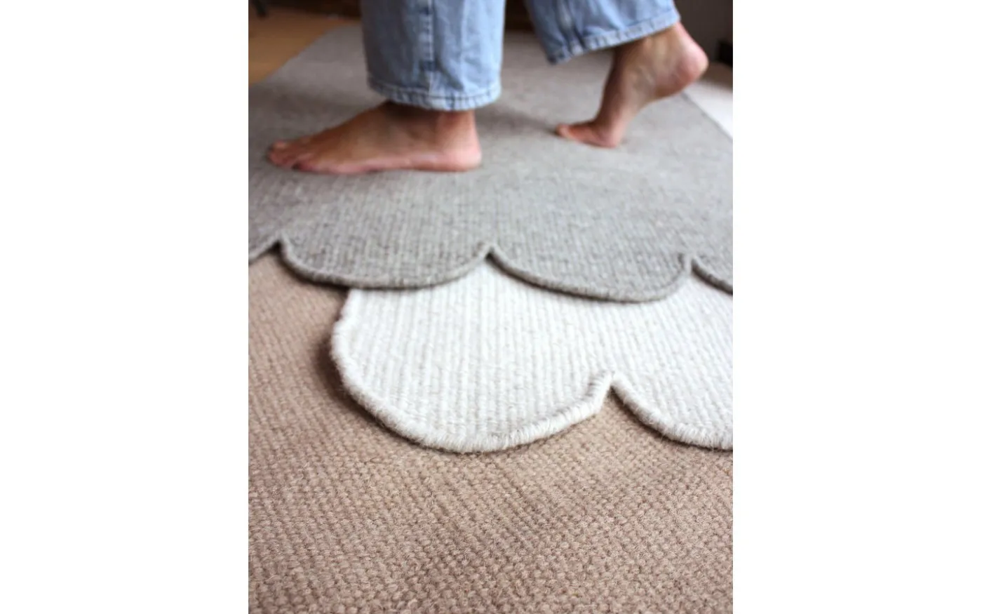 Fia är en tunn slätvävd, vändbar ullmatta med bomullsvarp och snäckskalsformade kortsidor. Ull är ett naturligt material och en förnybar fiber, ull är en stark fiber och är känd för sin hållbarhet och långa livslängd. Ull har en naturlig smuts- och vattenavvisande förmåga och lämpar sig därför mycket bra som material i en matta. Mattan kan fälla till en början, något som avtar med tiden och allt eftersom mattan används. Skaka mattan regelbundet för att få bort damm eller smuts och vädra den då och då. Rengör eventuella fläckar med fuktig trasa eller lämna för fackmannamässig mattvätt. Mått 70x140cm. Denna mattan är ett hantverk och vissa avvikelser och ojämnheter i väven kan förekomma. Fackmannmässig mattvätt