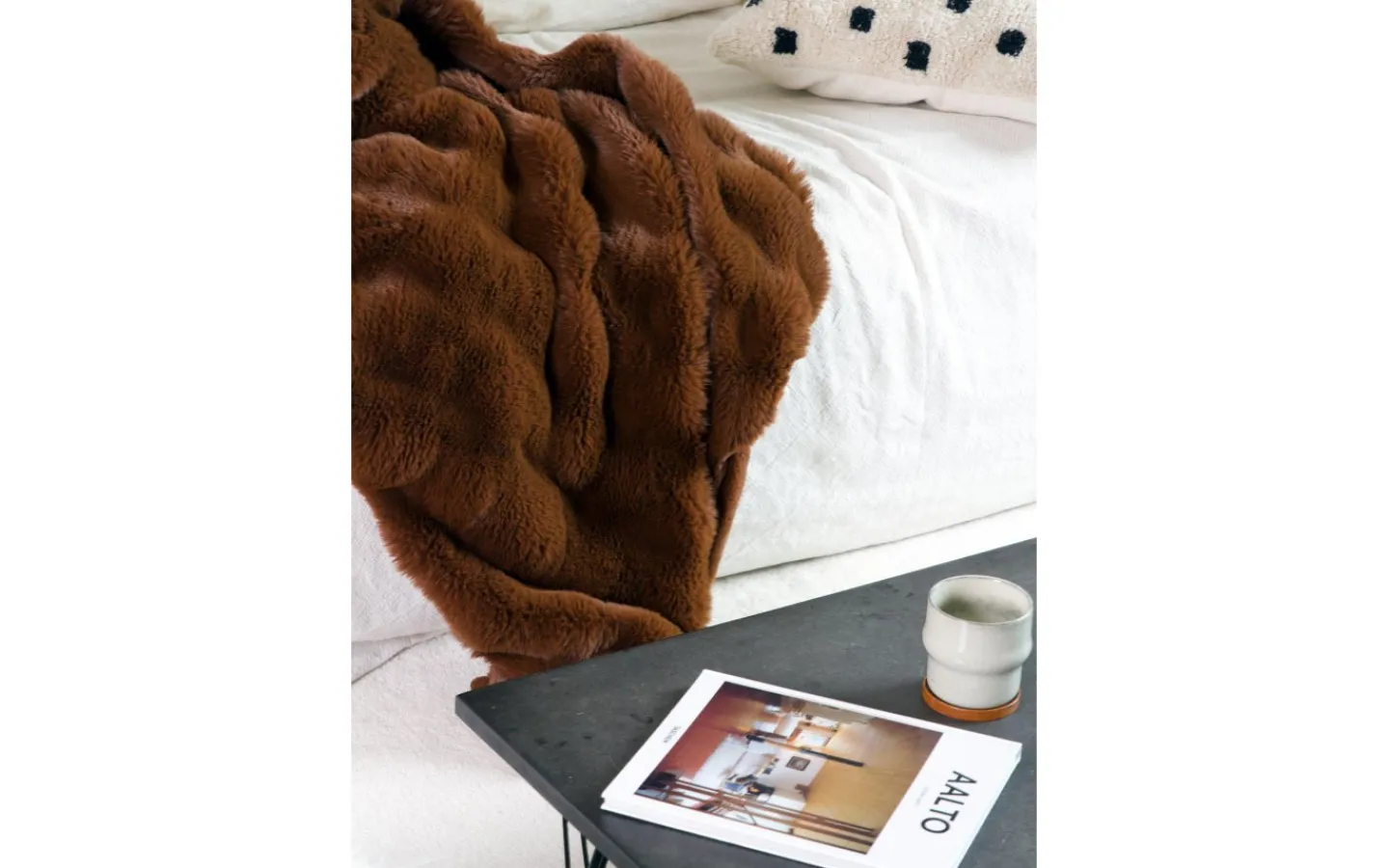 Pläd i pälsimitation på framsidan och mjukt tyg på baksidan. Mått 120x150cm. Produkten är certifierad enligt STANDARD 100 by OEKO-TEX®. Certifieringen garanterar att produkten är testad och fri från ämnen som kan vara skadliga för hälsan och miljön. 30 grader maskintvätt Klorblekmedel får ej användas Får ej torktumlas Kan ej strykas Kemtvätt (Perkloretylen)