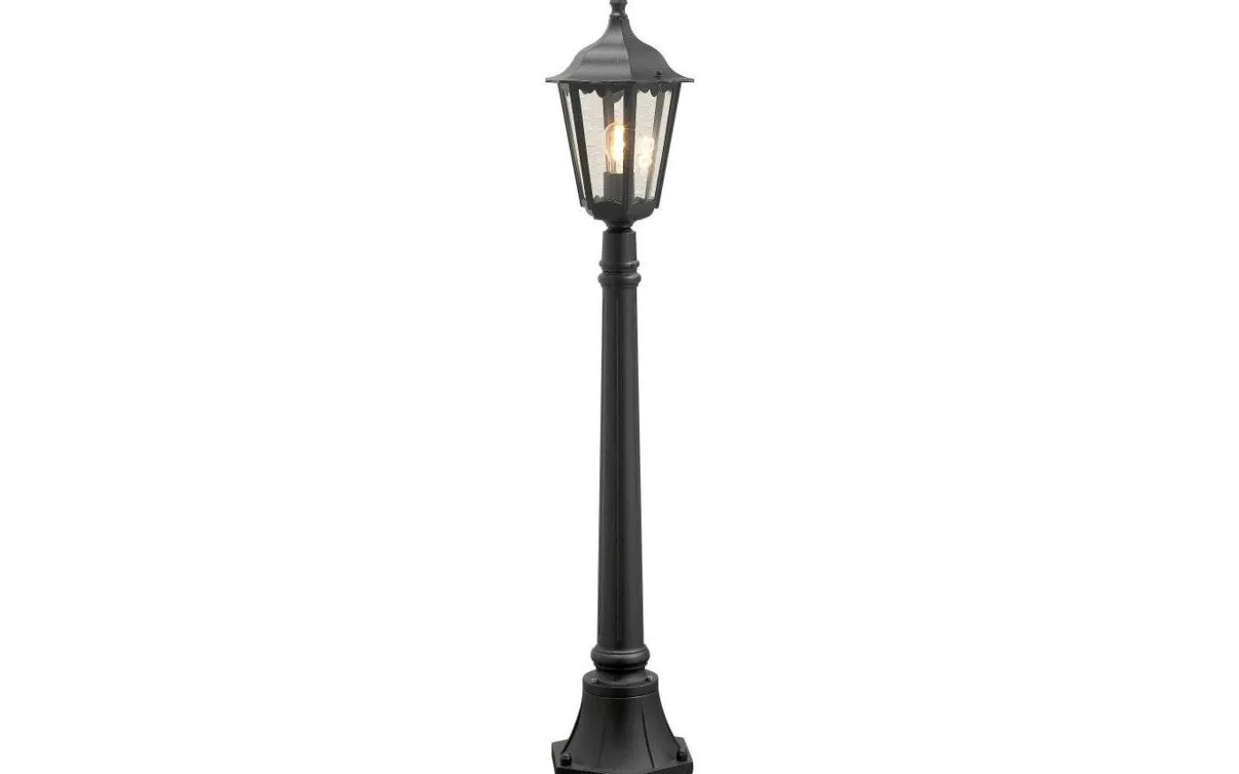 Denna högkvalitativa pollare är 1,2 meter hög och tillverkad av svart aluminium med lykta i klarglas.
