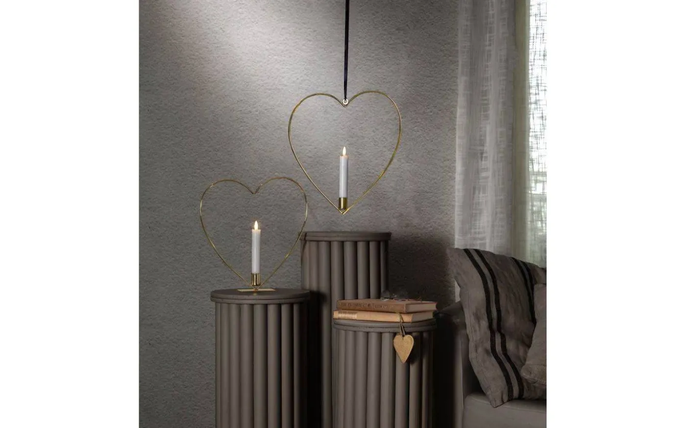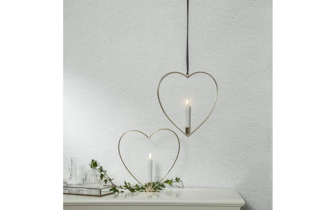 Flamme hjärtformad hängande dekoration från Star Trading är av metall med en mässingsfärgad finish och ett dekorativt batteridrivet antikljus.