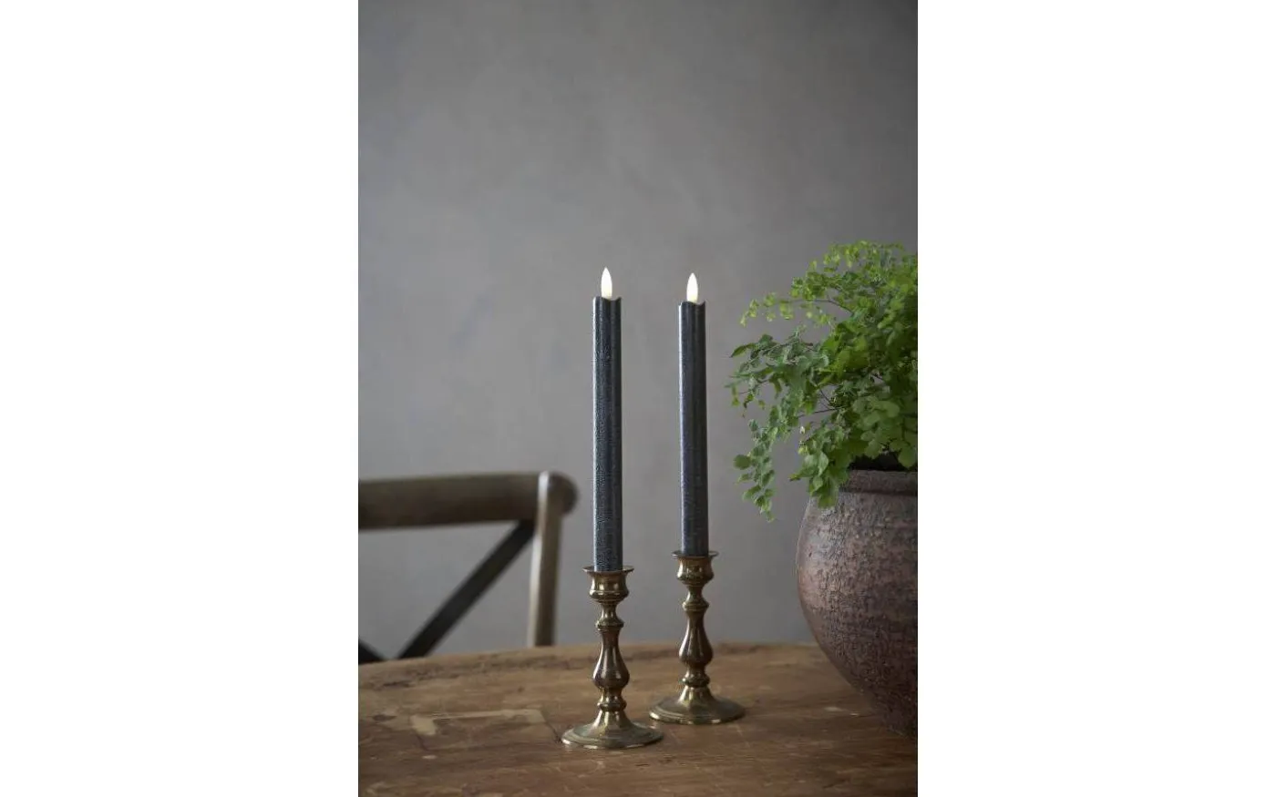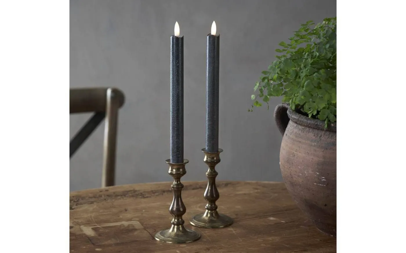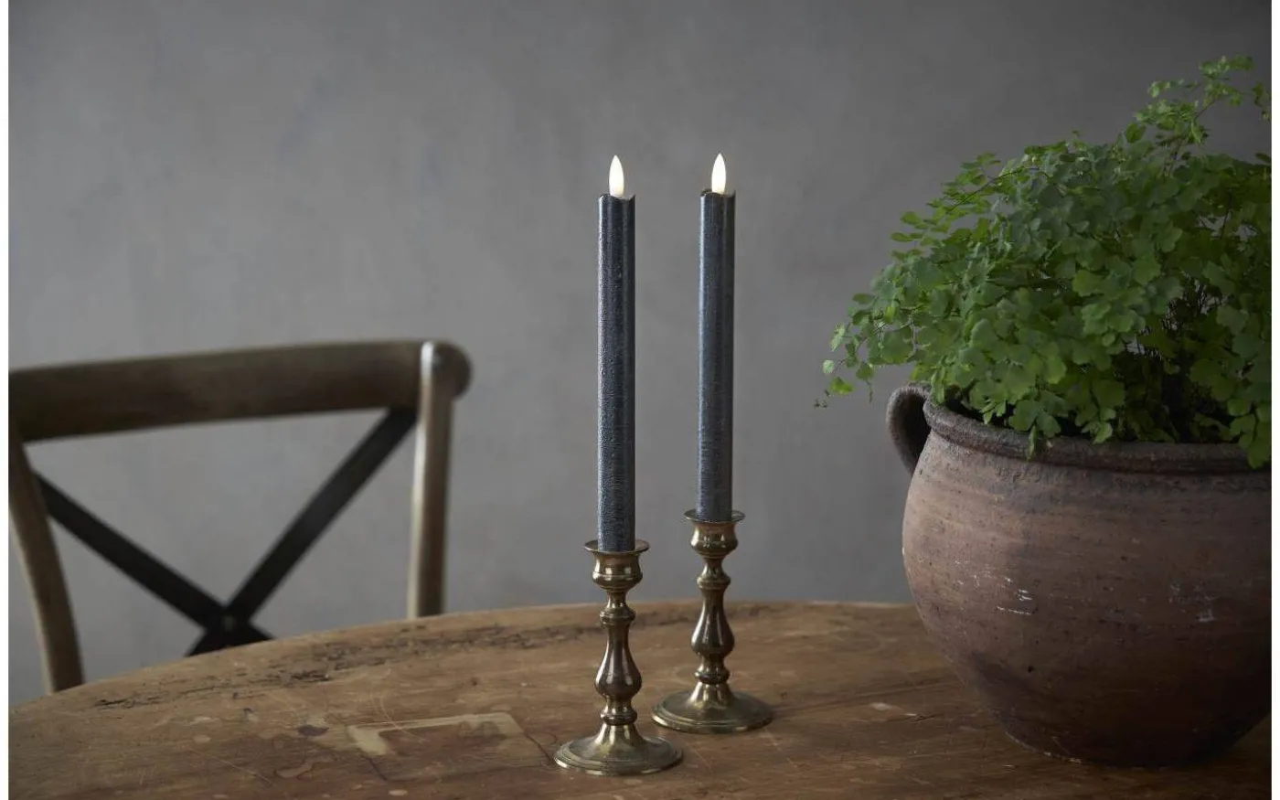 Dessa fina antikljus har en svart veke med en rund 3D-låga som nästintill ser ut som en riktig låga. Dessa batteridrivna ljus lyser i ett mysigt varmvitt ljussken och lågan skiftar i ljusstyrka för att avge ett vackert och verklighetstroget intryck.