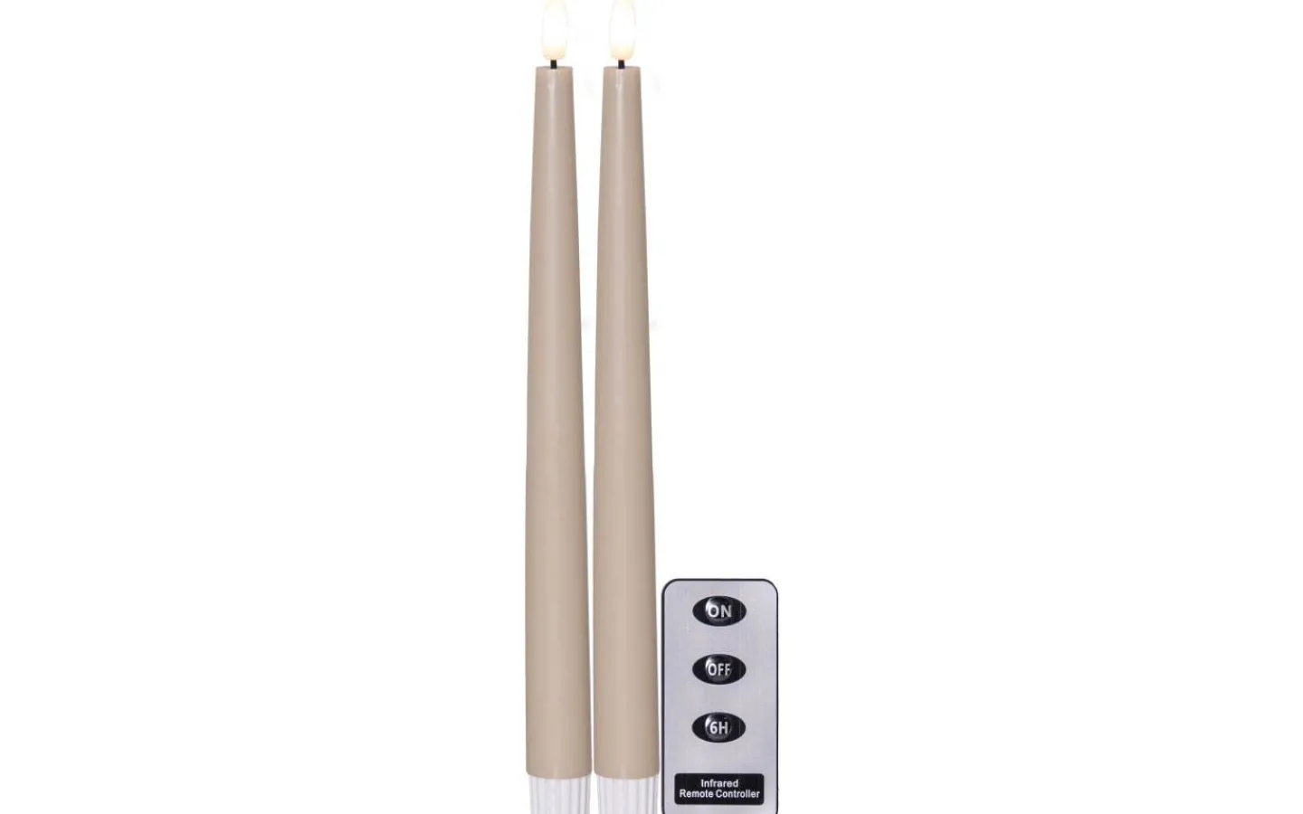 Detta är ett 2-pack med ljus som är 28,5 cm långa samt en fjärrkontroll som gör att du enkelt kan tända och släcka ljusen. Fjärrkontrollen har även en knapp för timerfunktion, trycker du på denna så lyser ljusen i 6 timmar och tänds igen samma tidpunkt dagen efter. Dessa ljus är 2,1 cm i diameter över bredaste punkten.