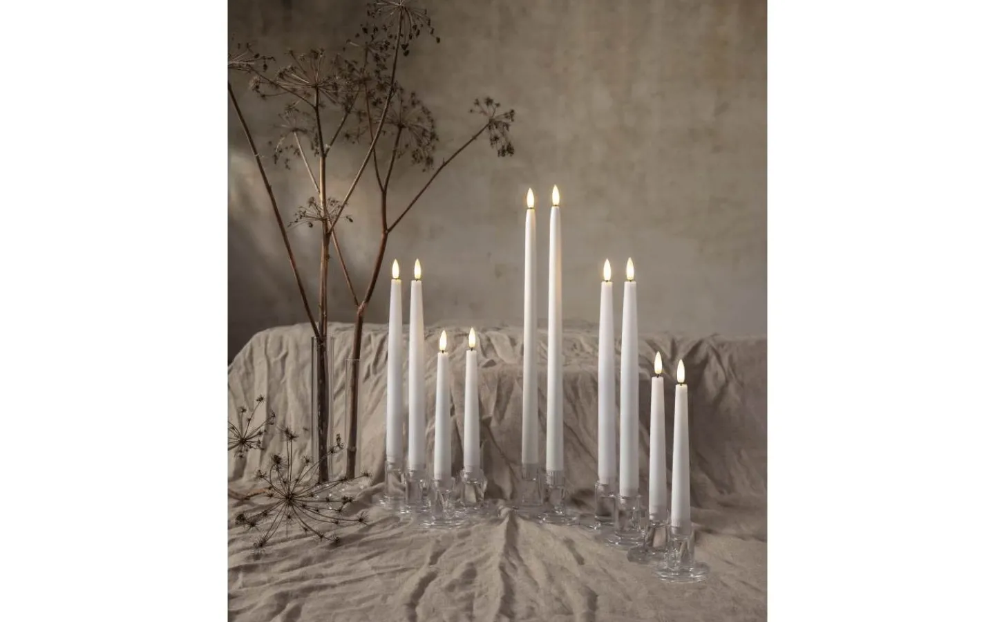 Mer verklighetstrogna batteridrivna ljus än Flamme från Star Trading får du leta efter! Dessa fina antikljus är vita med svart veke och en rund 3D-låga som nästintill ser ut som en riktig låga. Dessa batteridrivna ljus lyser i ett mysigt varmvitt ljussken och lågan skiftar i ljusstyrka för att avge ett vackert och verklighetstroget intryck. Dessa vackra antikljus kan du njuta av i många år framöver.