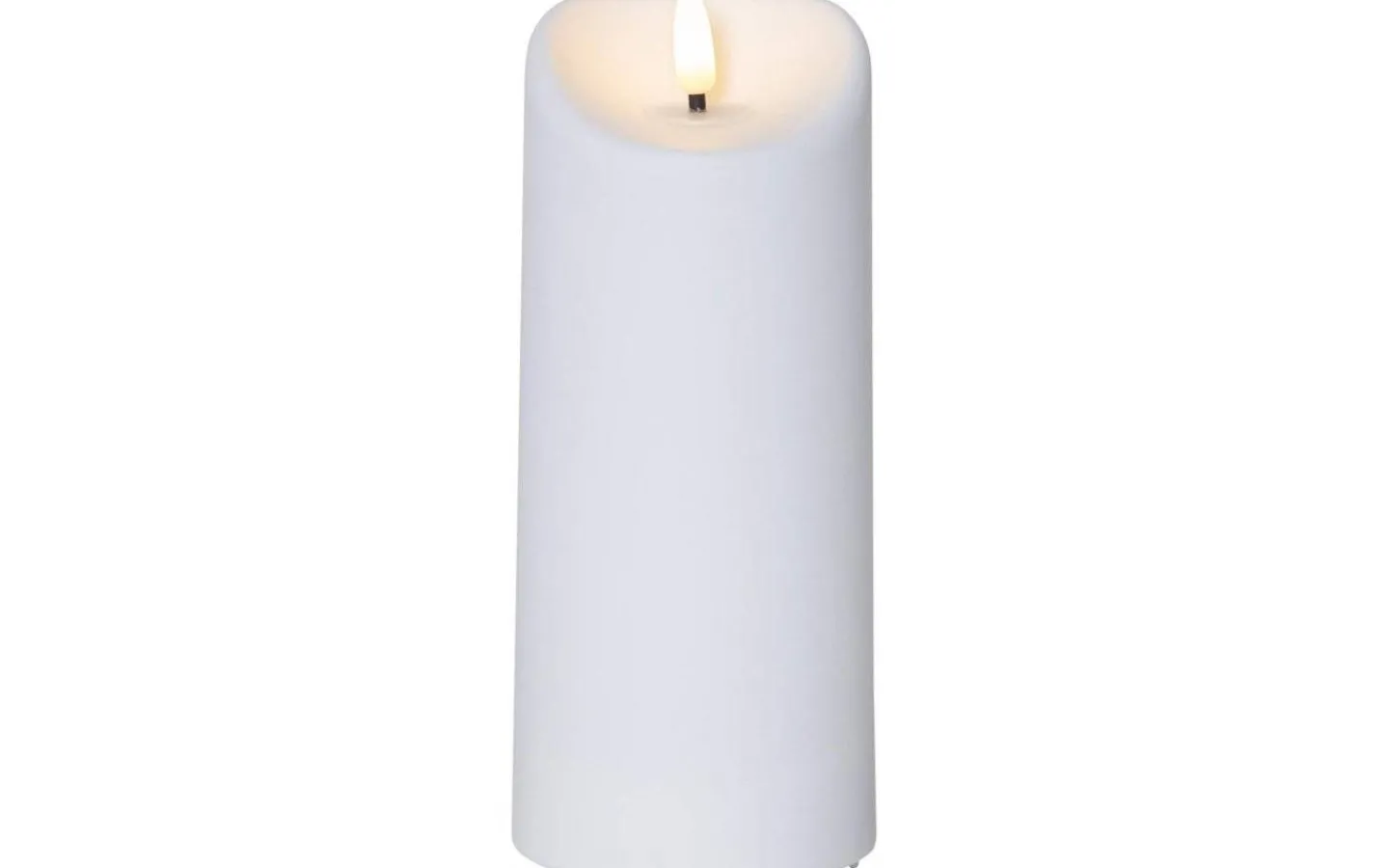 Vitt ljus i plast med Flamme lågan, går bra att använda både inomhus och utomhus. Produkten har en inbyggd timer.