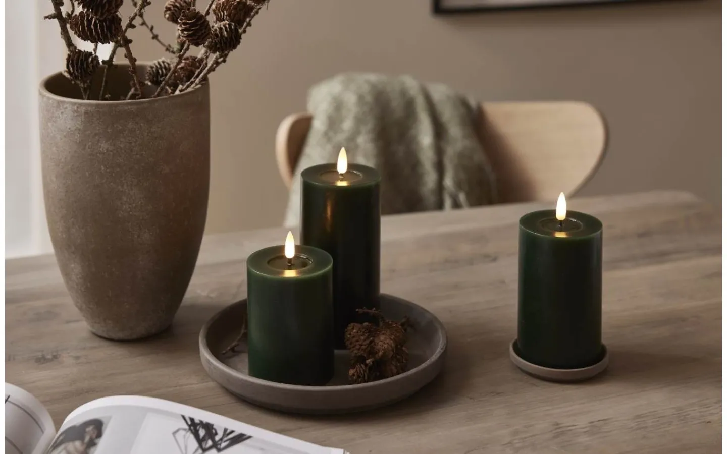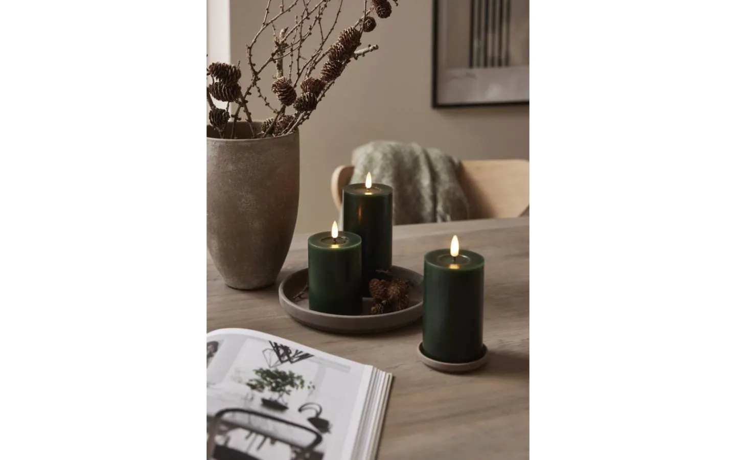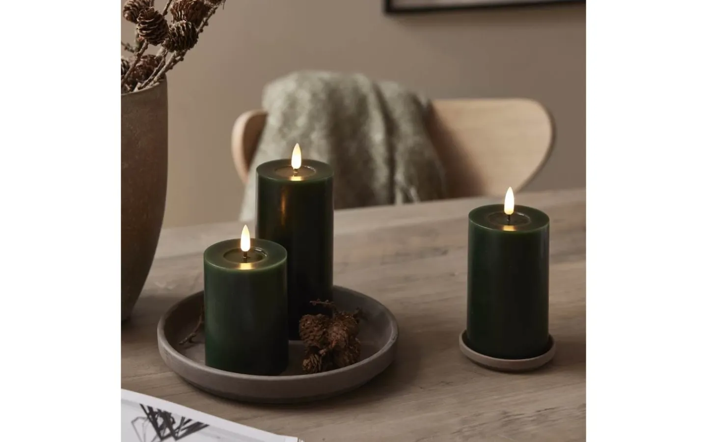Flamme Flow batteridrivet blockljus från Star Trading är det vackert blockljus med en blank nedsänkning under lågan som ser ut som flytande vax vilket gör ljuset än mer naturtroget.