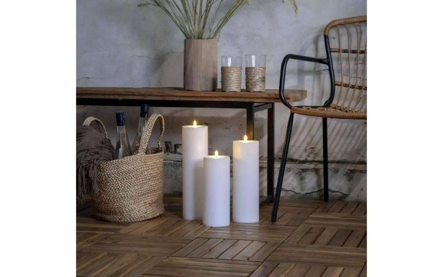 Flamme Rak blockljus är ett batteridrivet ljus för både inom- och utomhusbruk från Star Trading. Blockljuset är tillverkat i vit plast med svart veke och en rund 3D-låga som nästintill ser ut som en riktig låga. Detta batteridrivna blockljus lyser i ett mysigt varmvitt ljussken och lågan skiftar i ljusstyrka för att avge ett vackert och verklighetstroget intryck.