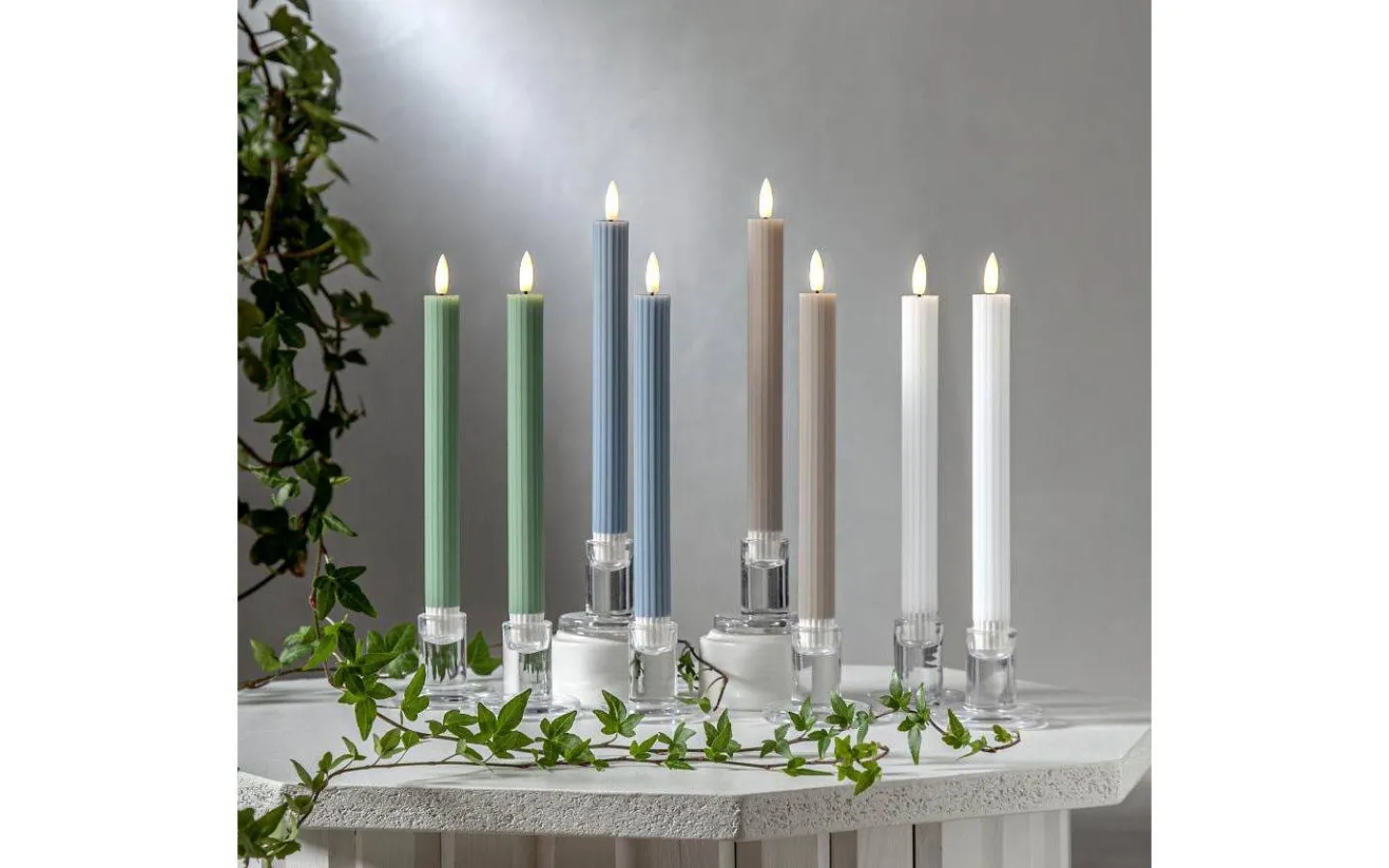 Flamme Stripe från Star Trading är ett härligt 2-pack antikljus i räfflat vax. Den naturtrogna runda 3D lågan är placerad på en svart veke och lyser i ett härligt varmvitt sken. Ljuslågan skiftar i ljusstyrka för att avge ett extra verklighetstroget intryck.
