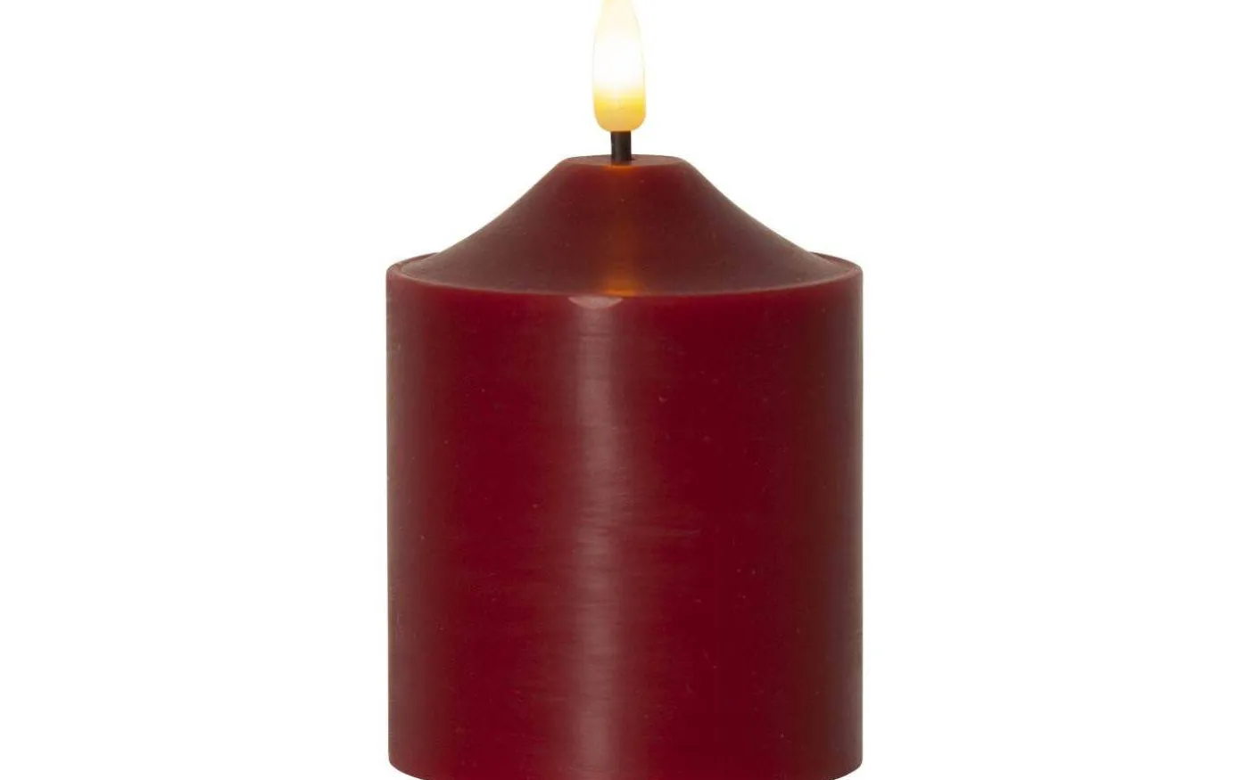 Detta fina blockljus har en svart veke med en rund 3D-låga som nästintill ser ut som en riktig låga. Ljuset lyser i ett mysigt varmvitt ljussken och lågan skiftar i ljusstyrka för att avge ett vackert och verklighetstroget intryck.