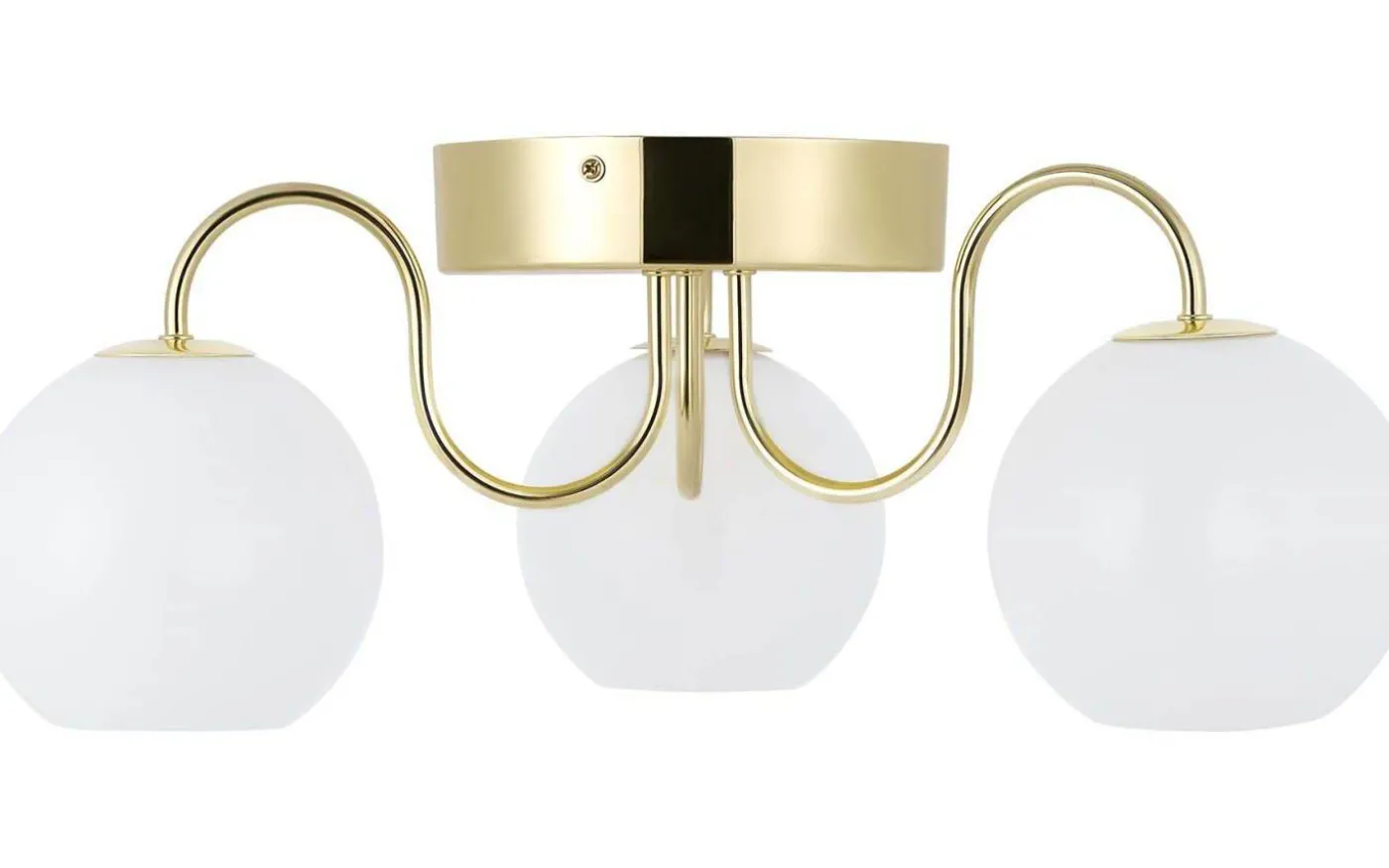 Stilfulla Franca från danska Nordlux är en elegant plafond i blank mässing tillsammans med blanka opalglas.