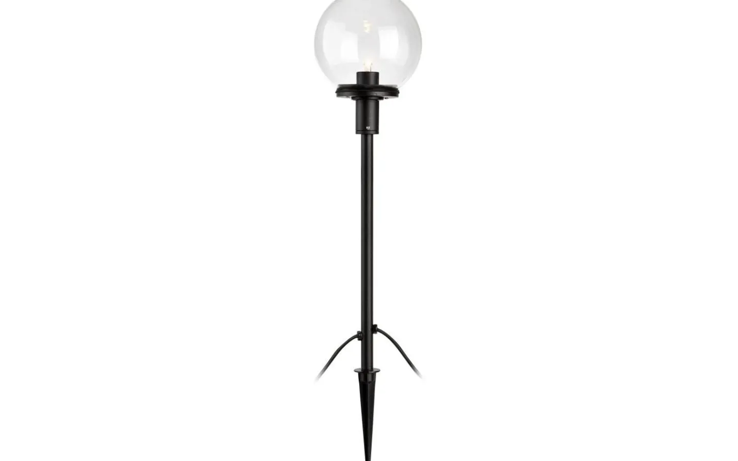 Garden24 svart pollare med glasglob i klarglas, från välkända Markslöjd. Denna pollare har en höjd på 60 cm och levereras med markspett för enkel placering i mjukt underlag, så som i en blomsterrabatt eller längs en trädgårdsstig.