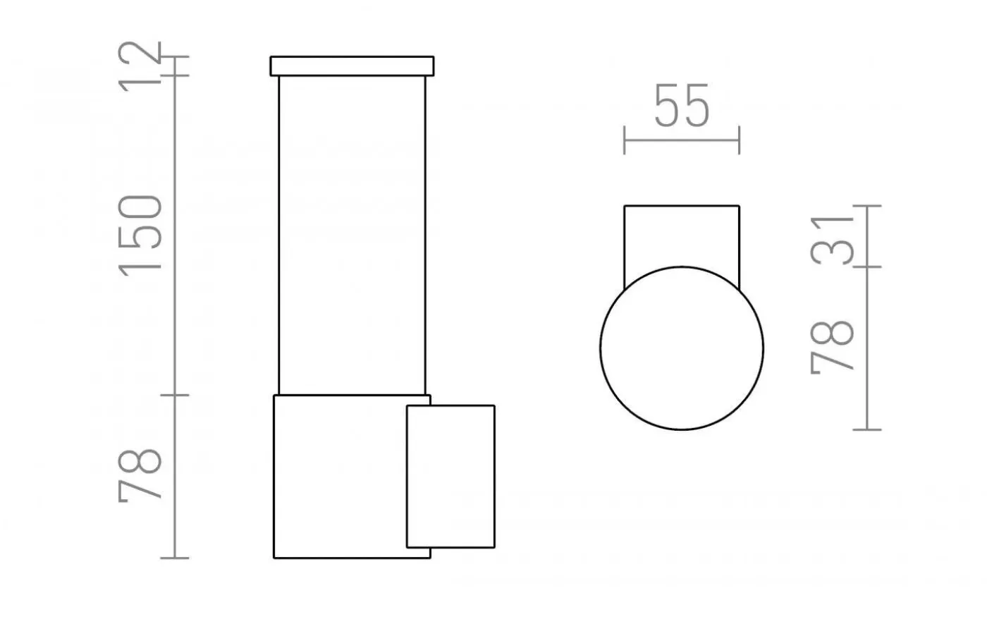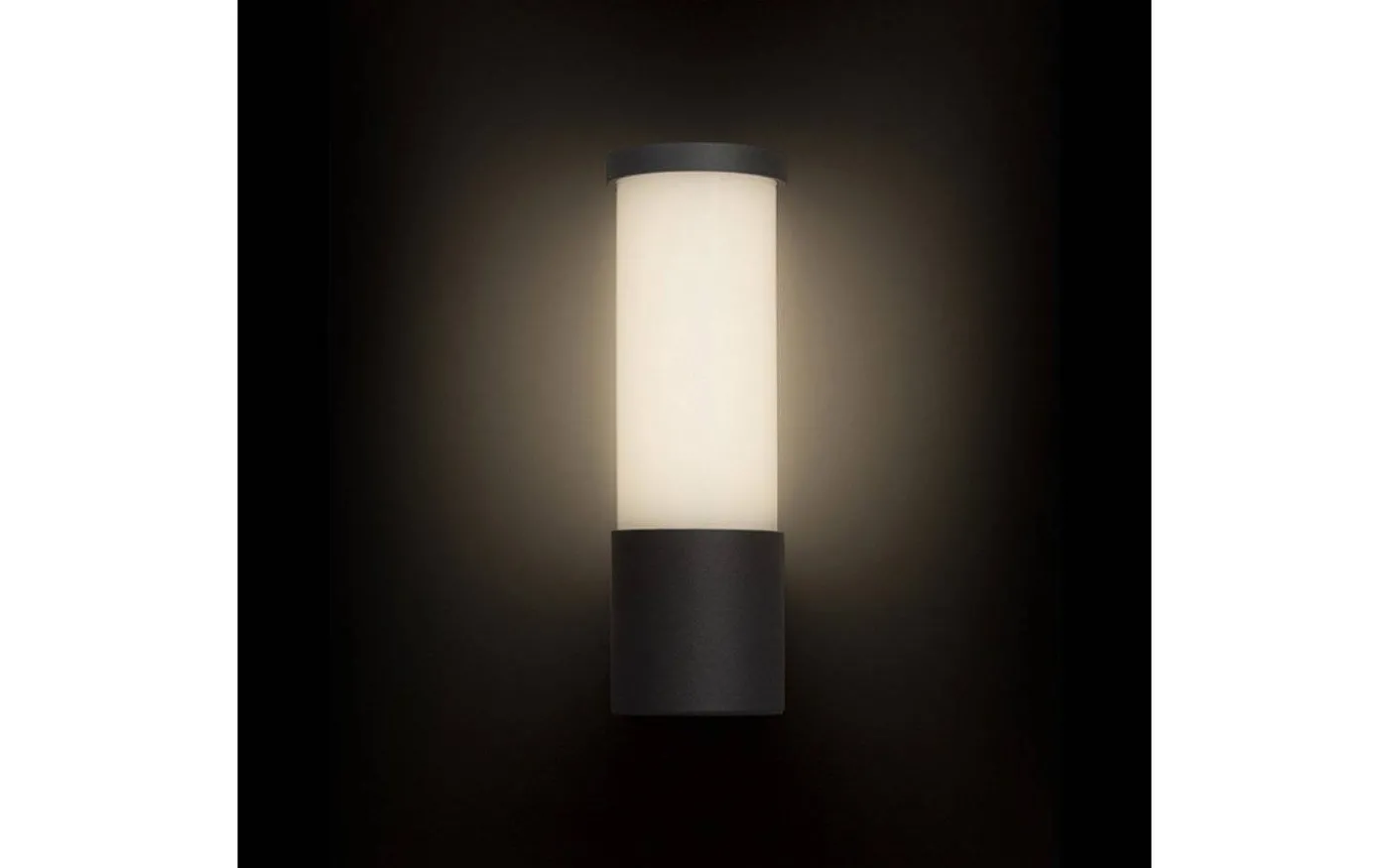 Cylinderformad utomhusvägglampa med inbyggd LED för allmänbelysning.