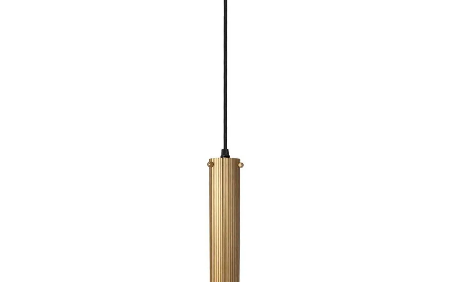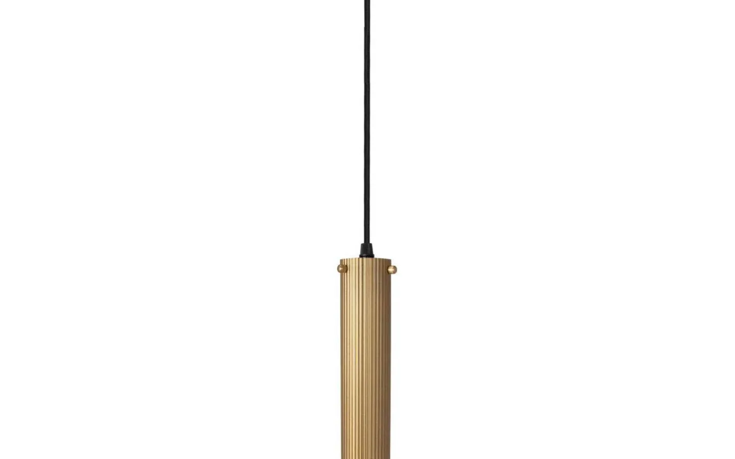 Tubformad enkel räfflad pendel i metall med flera användningsområden. Häng fler på rad över köksön, bardisken eller ett längre matbord eller så blir den vacker i all sin enkelhet ensam i ett fönster. Med olika typer av ljuskällor i den kan du också variera både utseendet och ljuset i denna pendel. Välj en riktad spot för arbetsbelysning, ett litet vitt klot för den moderna stilen eller ett större klot för stämningsfull mysbelysning. Hubble är gjord i borstad mässingsfärgad metall och har en 350 cm lång svart textilkabel med brytare.