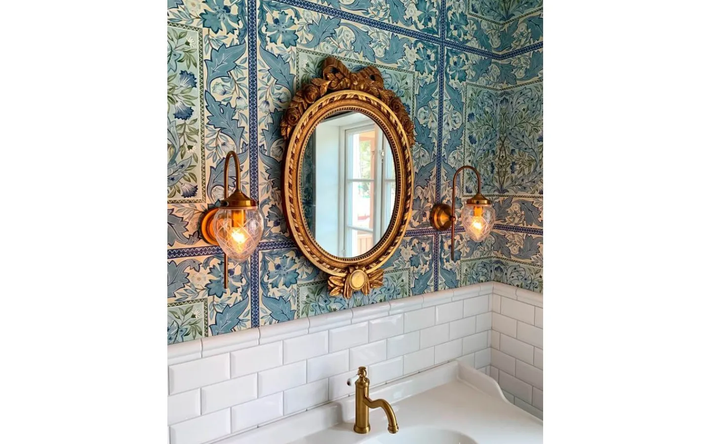 Vackra vägglampan Juni, från Globen Lighting, är en vägglampa med stomme i mässingsfärgad metall med en lite mörkade, slipad finish. Glaskupan är dropformad och gjord i klarglas med vackert rutmönster. En tidlös design som passar perfekt i det klassiska hemmet!