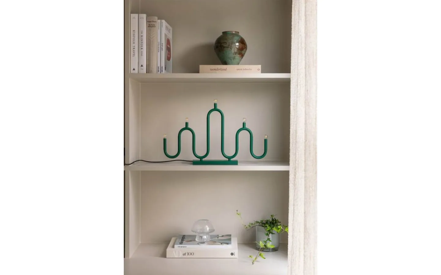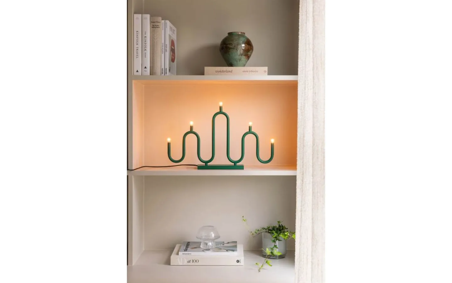 Noel från Globen Lighting är en adventsljusstake med nytt spännande formspråk. Den svängda designen, där metallrören böjs för hand i olika höjder, ger ljusstaken en unik form samtidigt som den behåller det traditionella utseendet av en adventsljusstake.
