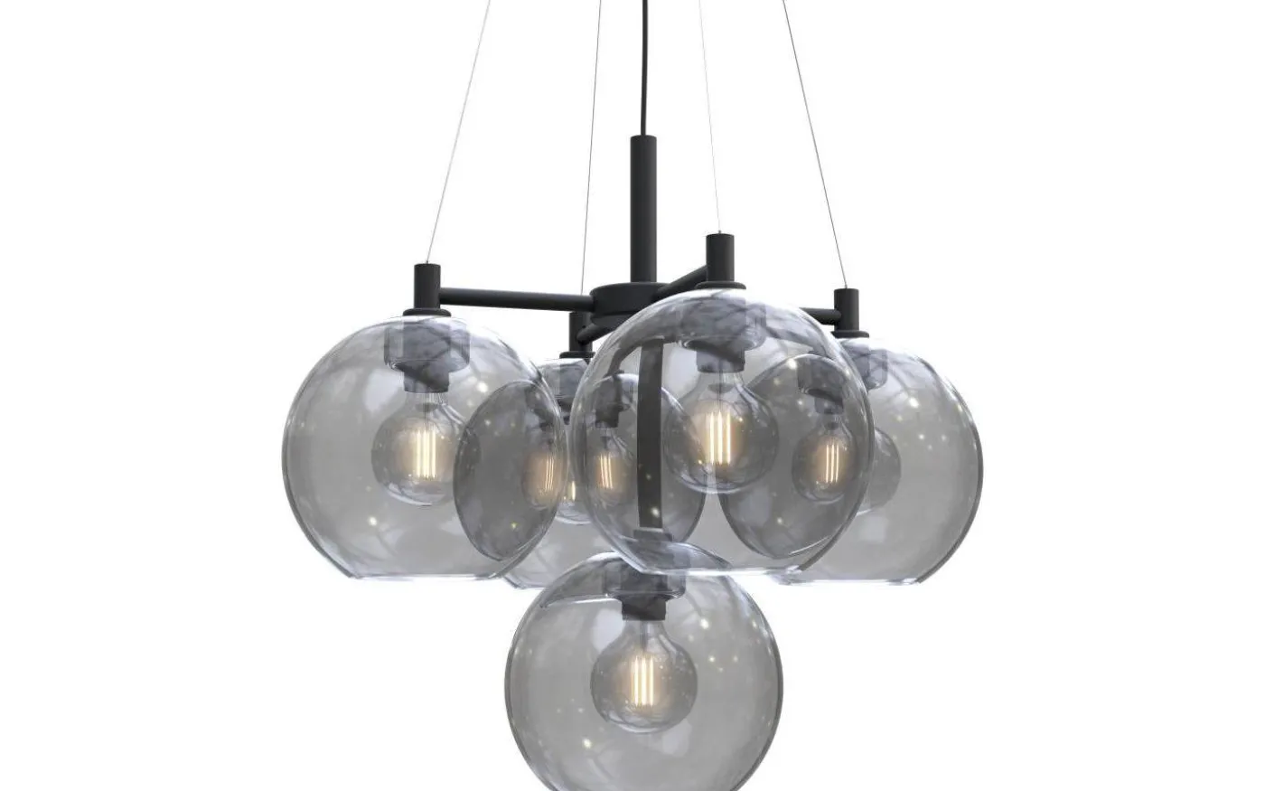 Vackra Gloria från Belid är en taklampa med stomme i svart metall och fem glaskupor i rökfärgat glas. Med sin tillverkning i Varberg tillverkas alla produkter från Belid av högsta, svenska kvalitet. Och Gloria är inget undantag!
