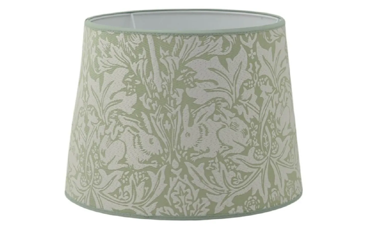 Brother Rabbit Sage är en klassisk lampskärm klädd i William Morris ikoniska mönster med kaniner och växtdetaljer. Den mjuka gröna färgskalan tillsammans med beige botten skapar en lugn och naturlig känsla som passar i både moderna och traditionella hem.